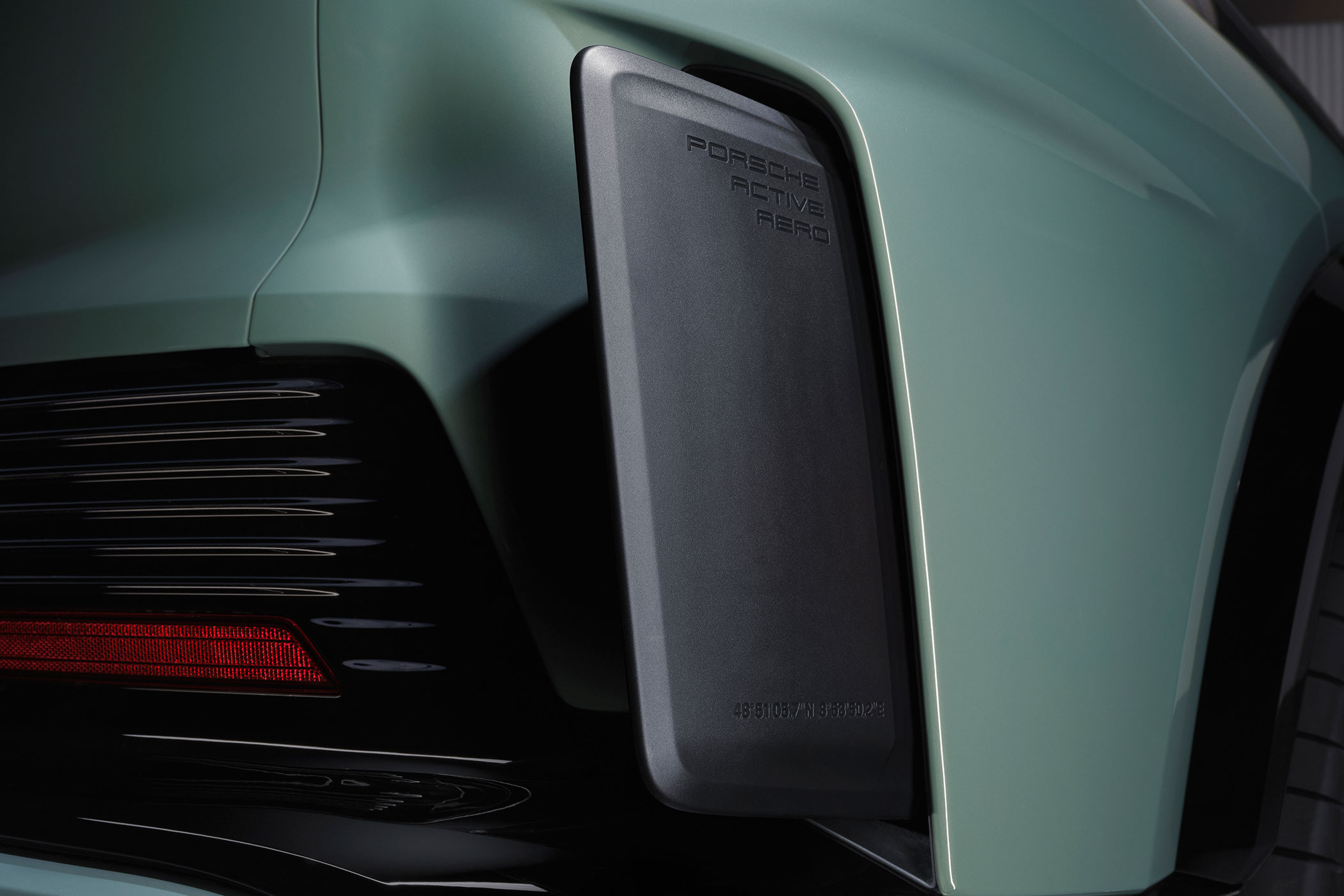 Egy elektromos autó energiaigényének mérséklésében az áramvonalasság fontosabb a súlycsökkentésnél, ezért a Cayenne Electric légellenállásnak lefaragása elsődleges volt. 0,25 az alaktényezője, ami egy nagy SUV-tól szó szép eredmény, pláne, hogy itt élek is vannak a karosszérián, nem úgy néz ki, mint a laposra nyalt jégkrém két pillanattal azelőtt, hogy letörik a pálcáról.