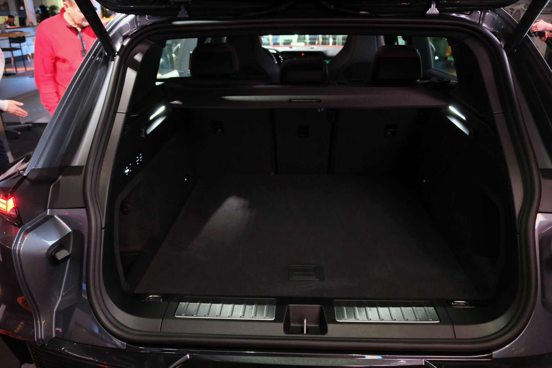 3023 milliméterre, majdnem 13 centit nőtt a tengelytáv a belső égésű motoros Cayenne-hez képest, hogy legyen hely a kerekek között a kapitális akkupakknak. Az autó 5,5 centivel nagyobb elődjénél, hossza 4985, szélessége 1980, magassága 1674 mm a légrugózás alapállásában. A kategórián belül ezek józan méretek, az új is kisebb az idén várhatóan búcsúzó BMW X5-nél.
