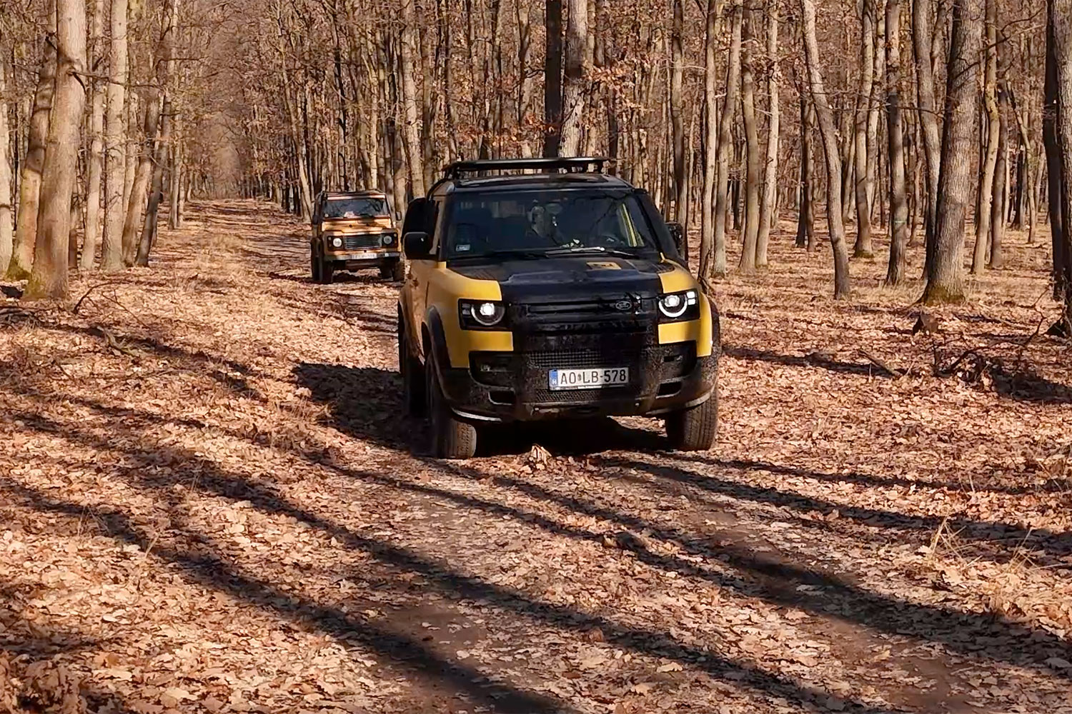 Ádám egy 1984-es Defendert hozott magával, amit mi is vezettünk, ő pedig kipróbálta a Pilis erdeiben a 2026-os verseny autóját. A Defender Trophy Editon a 110-es modellre épül, ez a középső hosszúság a három közül. A szám mögött jó ideje nem a 110 hüvelykes avagy 279,4 centis tengelytáv rejlik, ez csak egy utalás az autó méretére. A két tengely 3022 milliméterre van egymástól.
