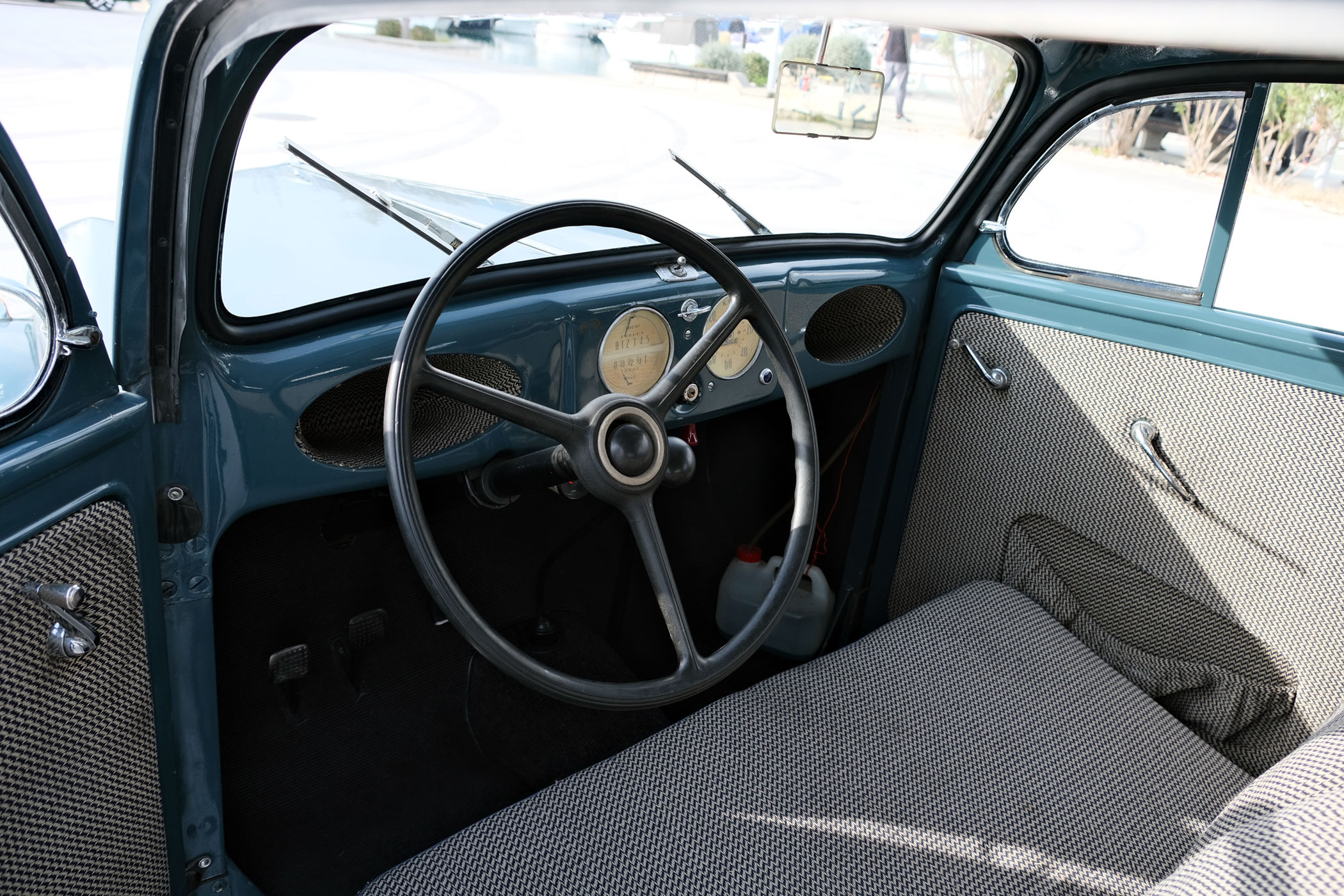 993 köbcentitől és 48 lóerőtől nem vártunk sokat, ráadásul az autó 61 éves idén és hárman ültünk benne. Mindezek dacára az apró négyhengeresbe bőven szorult élet, szerény erőnlétével is akarta a menést, amiben a rövid váltó-áttételezés is segít neki.