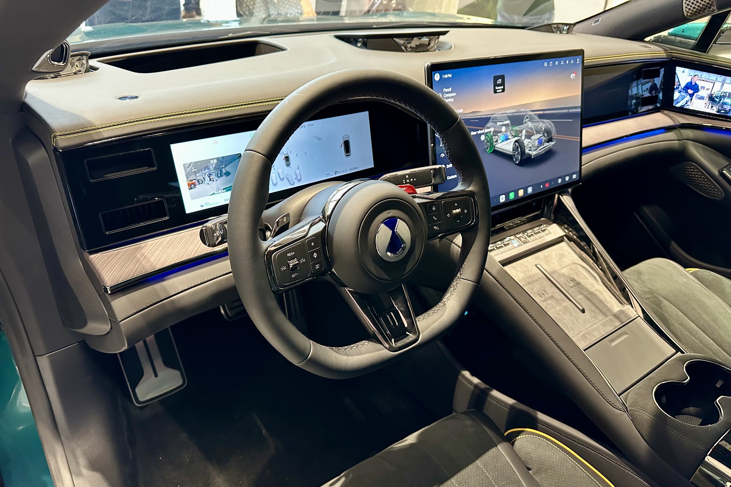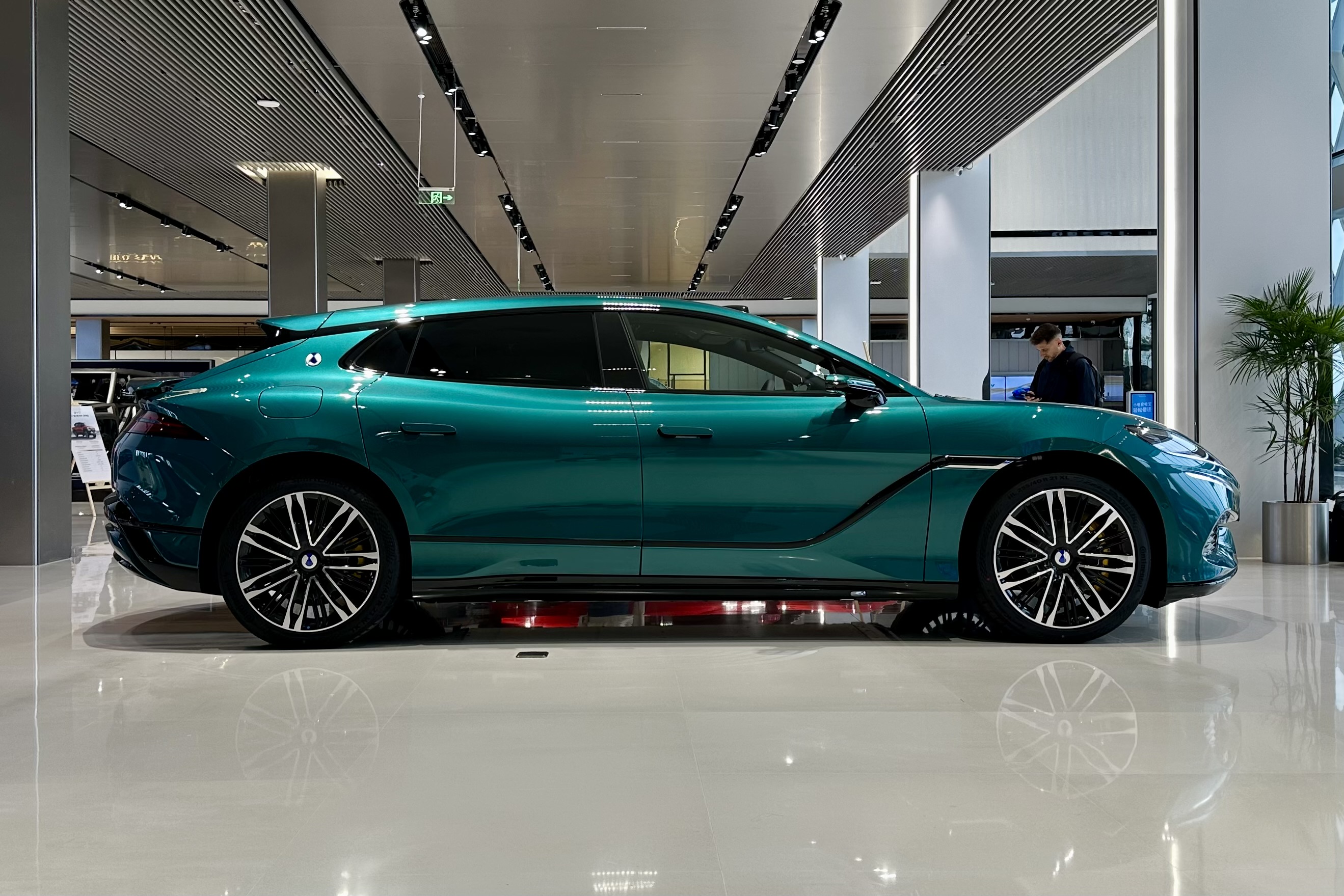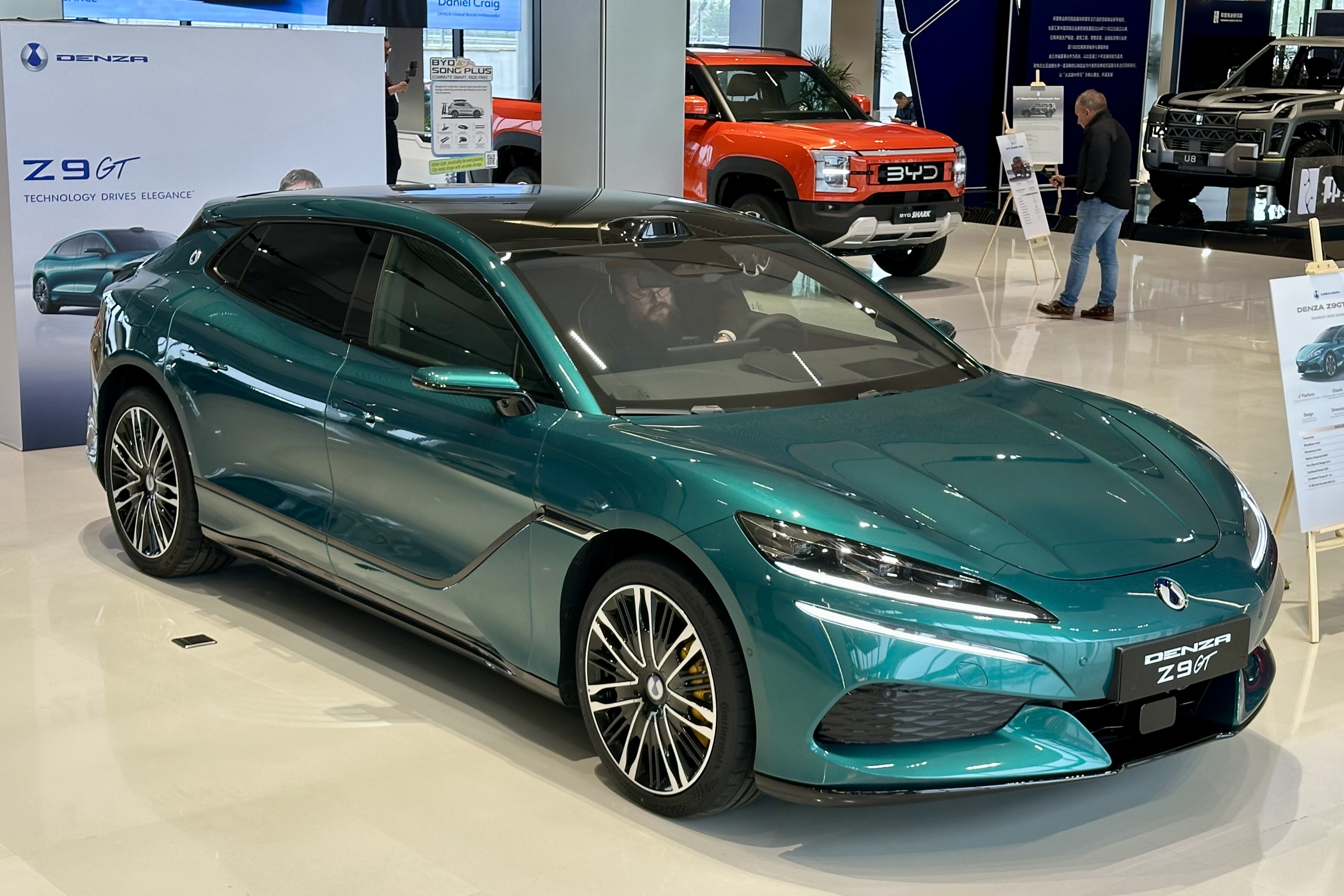 A következő modell, mellyel biztos, hogy hamarosan itthon is találkozhatunk, a BYD prémiummárkájától érkezik. A Denza az idei év végére tervezi a magyarországi rajtját zászlóshajójukkal, a Z9GT-vel. Hossza közel 5,2 méter, a tengelytáv 3125 mm, fordulóköre azonban így is csak 10,7 méter, hála a hátsókerék-kormányzásnak. Relatíve szolid külseje rengeteg erőt rejt. Már a konnektoros hibrid rendszerteljesítménye – ahol egy kétliteres, négyhengeres benzines is dolgozik, de a hajtásért az első tengelyen egy, hátul két villanymotor felel – is 776 LE. A tisztán villanyos változat azonban 1156 LE. Ezt a kialakítást e3 platformnak hívják a három hajtó villanymotor miatt. Álló helyzetből az autó 2,7 másodperc alatt katapultálhat 100 km/órára, és meg sem áll 269-ig.