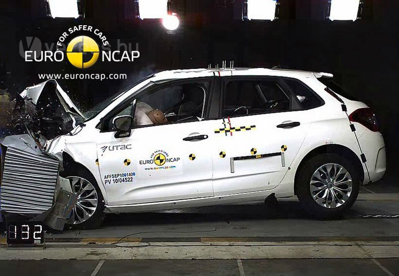Megfelelő volt a mellkas védelme az oldalsó korlátos teszten, ugyanakkor a kíméletlenebb oszlopteszt során már csak gyenge védelmet regisztráltak a műszerek a mellkas környékén. Megfelelő az ülések ostorcsapás-sérülések elleni védelme. Összességében 90 százalékra vizsgázott a C4. A részletes teszteredményért katt ide.