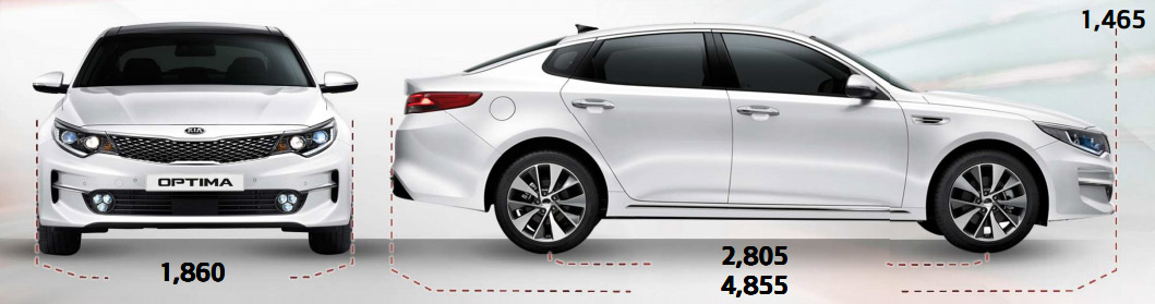 Három generáció és egymillió eladott példány után idén megújult a Kia középkategóriás négyajtósa, az Optima. Első ránézésre nehezen észrevehető a változás, hiszen a stílus nagyjából változatlan maradt, ugyanaz a padlólemez is, csupán hosszban és tengelytávban gyarapodott valamicskét az autó. Hosszban, magasságban és tengelytávban egyaránt egy-egy centit nőtt, szélességben viszont 2,5 centimétert kapott. Csomagtartója is nőtt, a korábbi 505-ről 510 literesre, és praktikusabb, a szélesebb nyíláson át könnyebben pakolható lett. Minimálisan ugyan, de javult a légellenállás is, a korábbi 0,29-ről, 0,27-re csökkent, amely az új orr-rész mellett az autó aljára került burkolatnak is köszönhető.