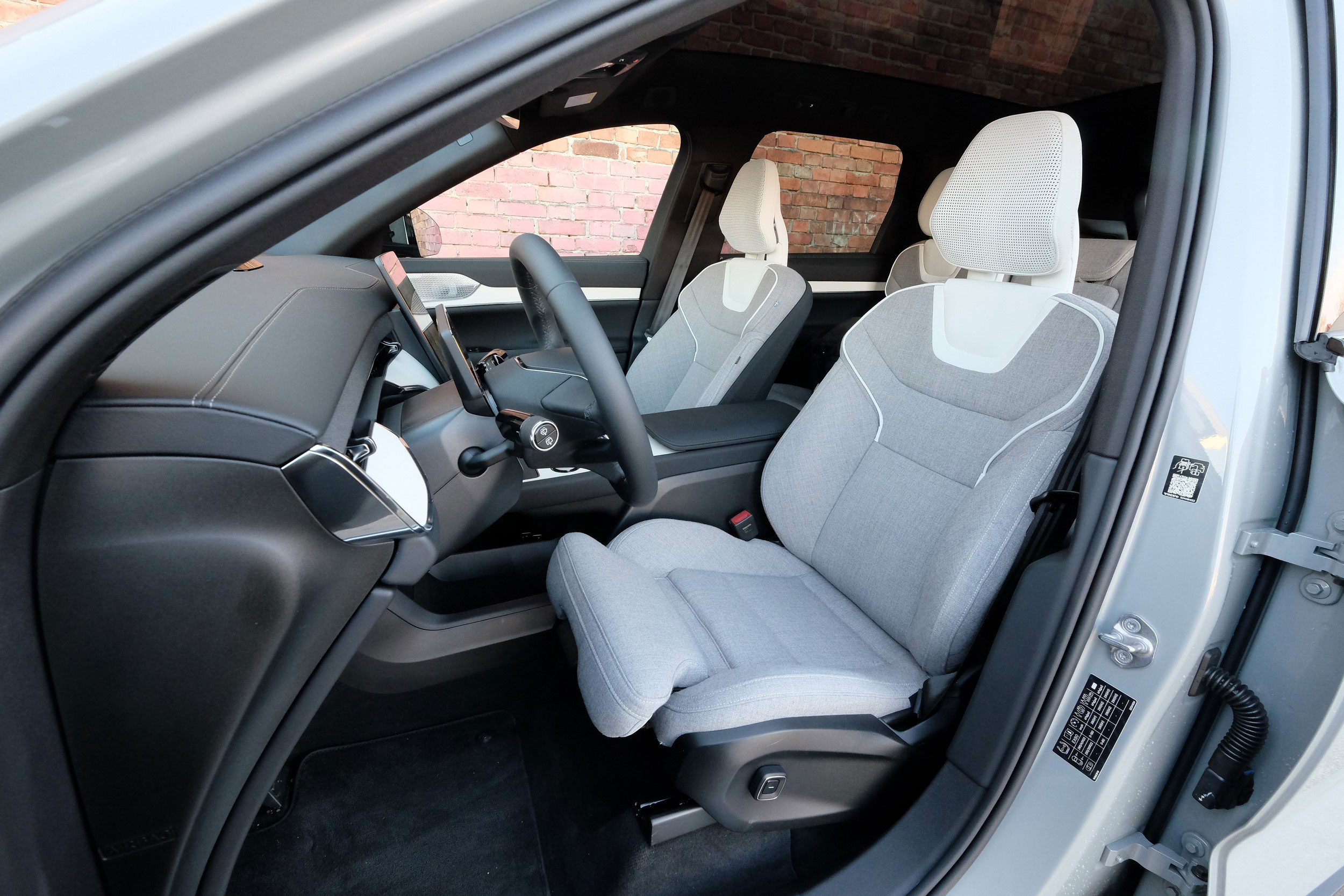 Utastere amellett, hogy hatalmas, magabiztosan hozza a Volvokban megszokott barátságos, otthonos, és itt az autó méreteinek köszönhetően elképesztően tágas érzést, amit a nagy üvegtető és a kárpit világos színei tovább erősítenek. Remek minőségű anyagokat használtak a lakberendezésnél, hibátlan a dizájn is, és egy pillanatig sem hiányzik a bőr üléskárpit, annyira jó a szürke textil tapintása, textúrája. Kényelmesek a rengeteg irányba állítható, – többek között az ülőlap hosszúsága és az oldaltartás is – fűthető, masszázsfunkcióval is ellátott első ülések.