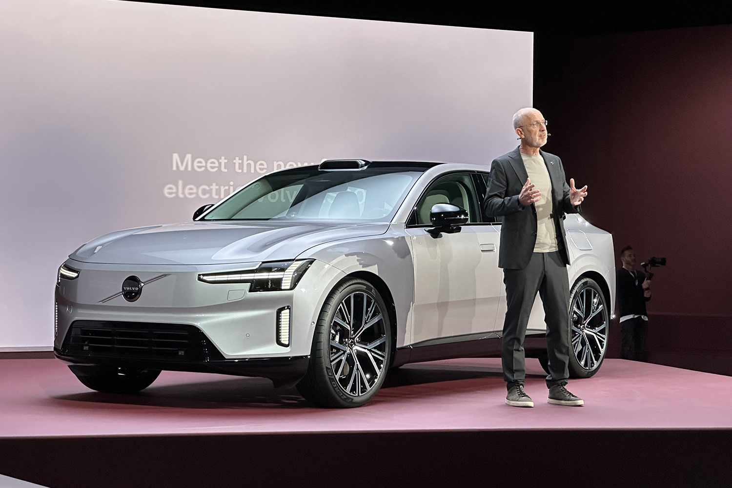 A nemrégiben próbált EX90 SUV után most Stockholmban jártunk a Volvo meghívására, hogy megpillanthassuk a gyártó eddigi legnagyobb tudású modelljét, az ES90 névre keresztelt szedánt. A bemutatónak az Artiplag galéria adott otthont, ahol maga Jim Rowan Volvo-elnök és ügyvezető mutatta be az ’Art of Balance’ (az egyensúly művészete) szlogen köré épült modellt.