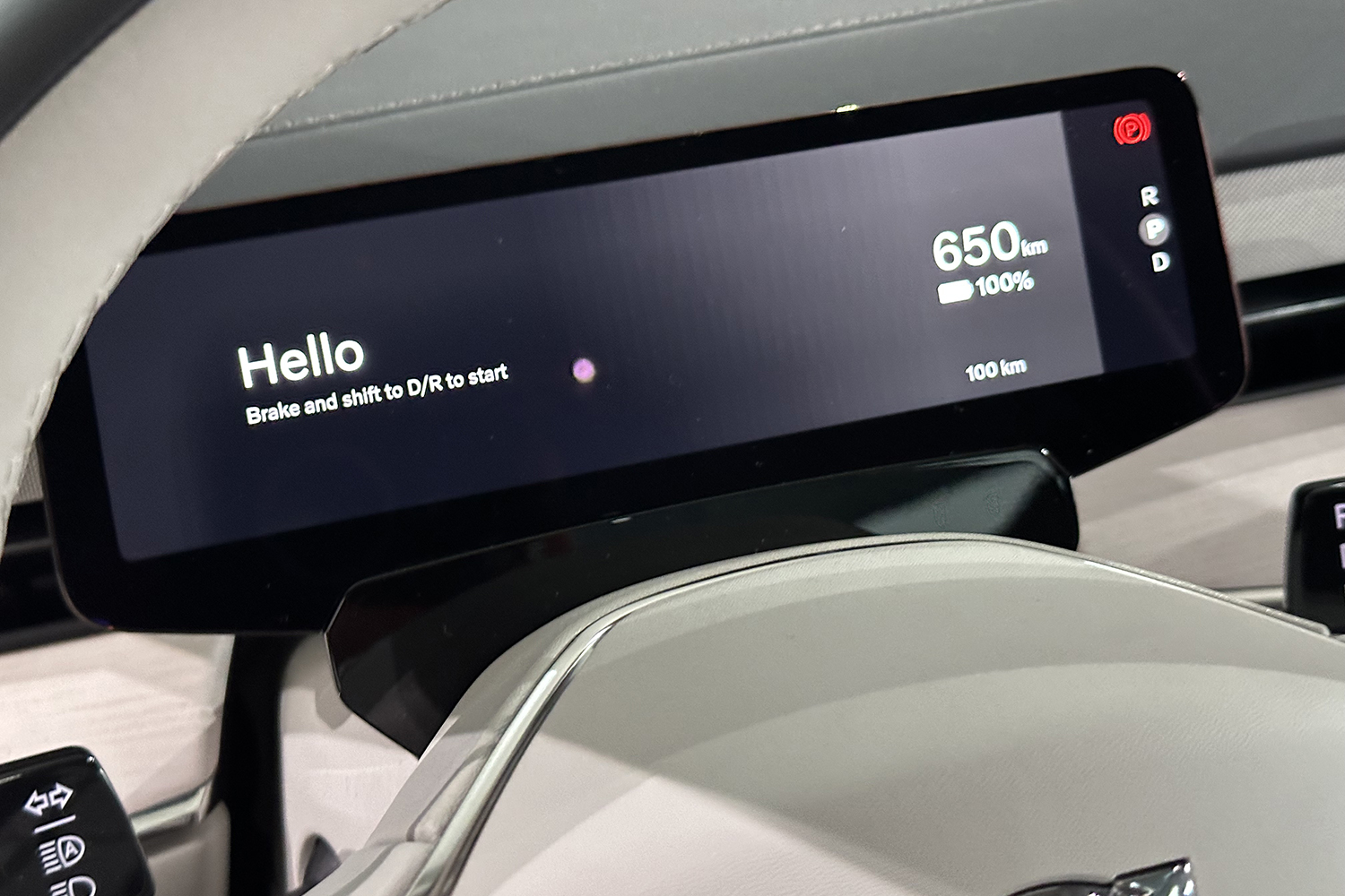 Az ES90 a Volvo modellekre jellemző minimalista skandináv formatervvel, prémium-minőségérzettel és tágas helykínálattal kecsegtet, ami az első benyomást illeti. A vezetéshez szükséges információkat egy, a kormány mögötti kisebb 9 colos kijelző jeleníti meg, amely információk között a kormányon elhelyezett érintőgombokkal navigálhatunk.