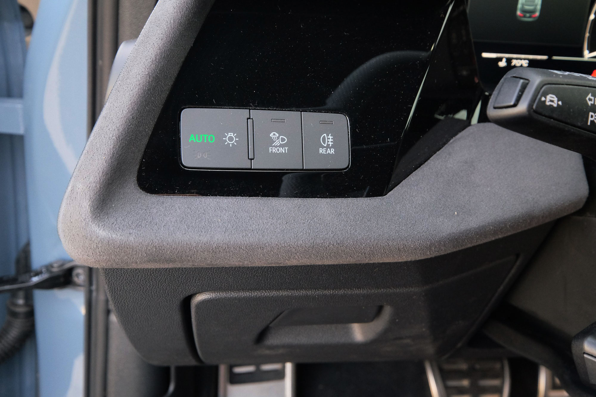 Egy Audi utastere évtizedeken át valamiféle ergonómiai csoda volt, nem nagyon volt mibe belekötni, olyan kidolgozású, tapintású, súlyú és működésű kapcsolókkal, gombokkal, amiknek a használata élmény volt. Ez a nagyszerűség 2025-re már egy kicsit megkopott, de a márka még mindig próbálja tartani magát. A VW konszernen belül pusztító érintésérzékeny felületek ugyan ide is beszivárogtak, a kormány sajnos tele van ilyenekkel és valami félnótás a középkonzolra telepített, általában tekerős hangerőszabályzógombot is lecserélte egy multifunkciós, érintésérzékeny felületre. Viszont a klímakonzol megúszta, oda rendes billenőkapcsolók kerültek, teljesen egyszerű, érthető működéssel, amit odanézés nélkül is lehet kezelni.