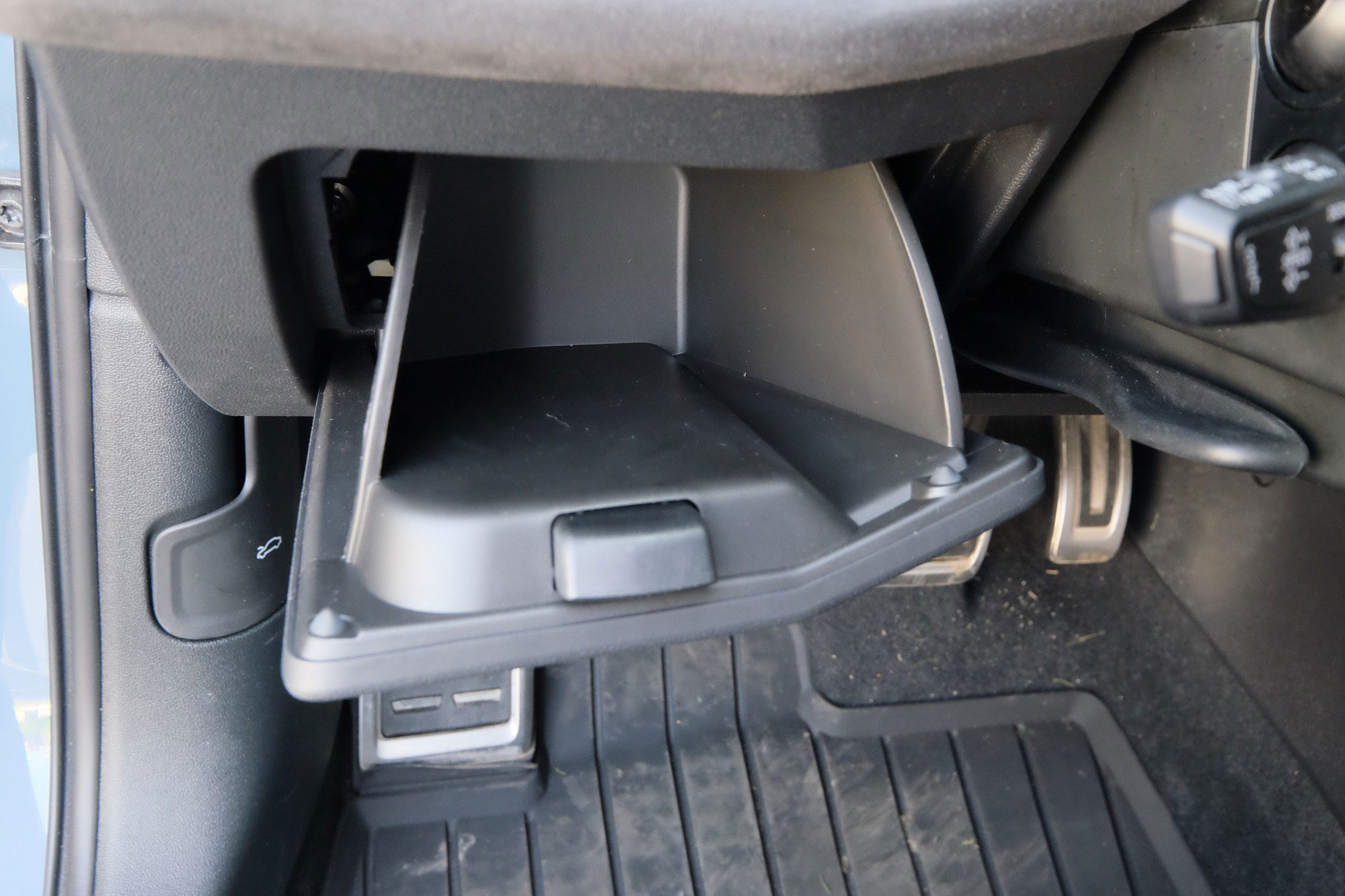 Csomagtartójának ajtaja elektromos működtetésű – akár láblendítéssel is nyitható, csukható – kifejezetten kényelmesen magasra nyílik, nem kell tartani az önkéntes, spontán koponyalékeléstől rámolás közben. A raktér befogadóképessége 282 literes, – a négyajtós RS 3-ban ez 321 liter – ezt a háttámlák lehajtása után 1104 literre lehet bővíteni. Az üléstámlák alapból 1/3-2/3 arányban dönthetők, de a középső támla külön választható, ha épp középre kell valami extra hosszú cuccot berámolni.
