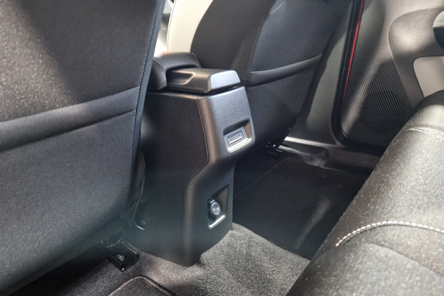 Szellőzők nem, de USB-töltőpontok jutnak a harmadik sor utasainak is, és pohártartót is kapnak. Az első és második sorban két-két USB-C csatlakozót találni, a középkonzolon 15 W-os vezeték nélküli mobiltelefon-töltőt is kialakítottak.