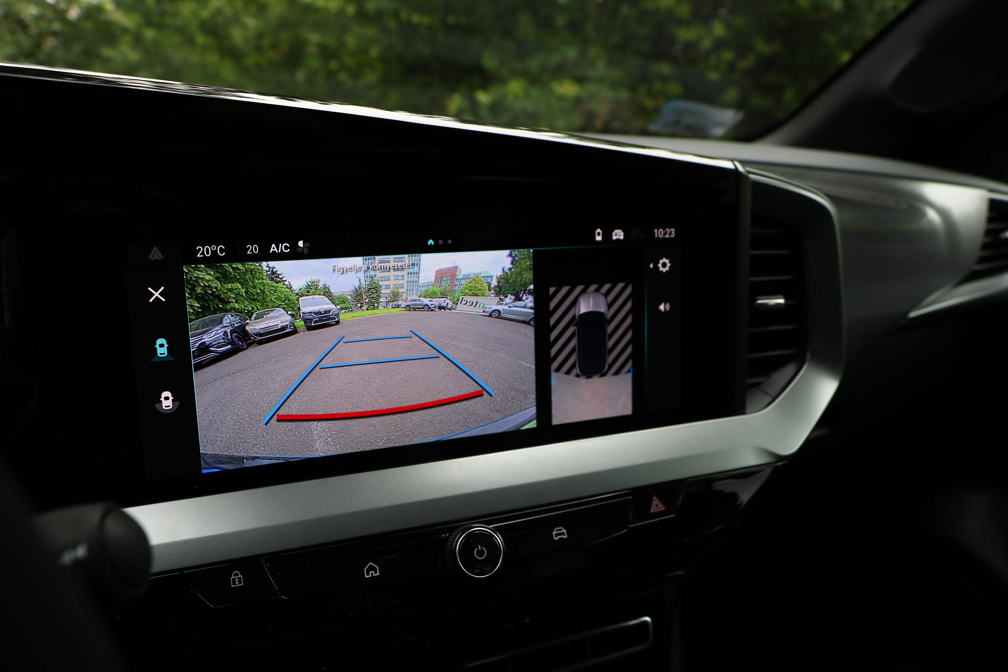 Kissé bunkerszerű a karosszéria, a vaskos oszlopok sokat takarnak, és sofőrként szinte a B-oszlop mögött ülünk nagyobb termettel, ezt szokni kell a városi manőverezés során is. A parkolást segítő kamera képe átlagos, és nincs túl sok opciónk, éppen összerak egy felülnézeti képet, de leginkább közepes a teljesítménye.