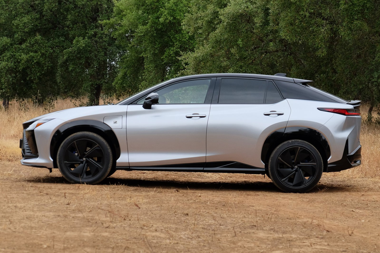Bár műszakilag szinte minden porcikájában frissült a Lexus RZ, ez az autó külsején alig látszik meg. Egyedül a jelenleg meglévő kétféle kivitel mellé érkező harmadik, RZ 550e F Sport névre hallgató változat kasztniján vehető észre némi változás. Ezen az első alsó lökhárítón lévő díszlécek, a fék hűtésére szolgáló légebömlők és az első és hátsó légterelők, hátsó lökhárító kaptak új, a sportos hangulathoz jobban passzoló megjelenést.