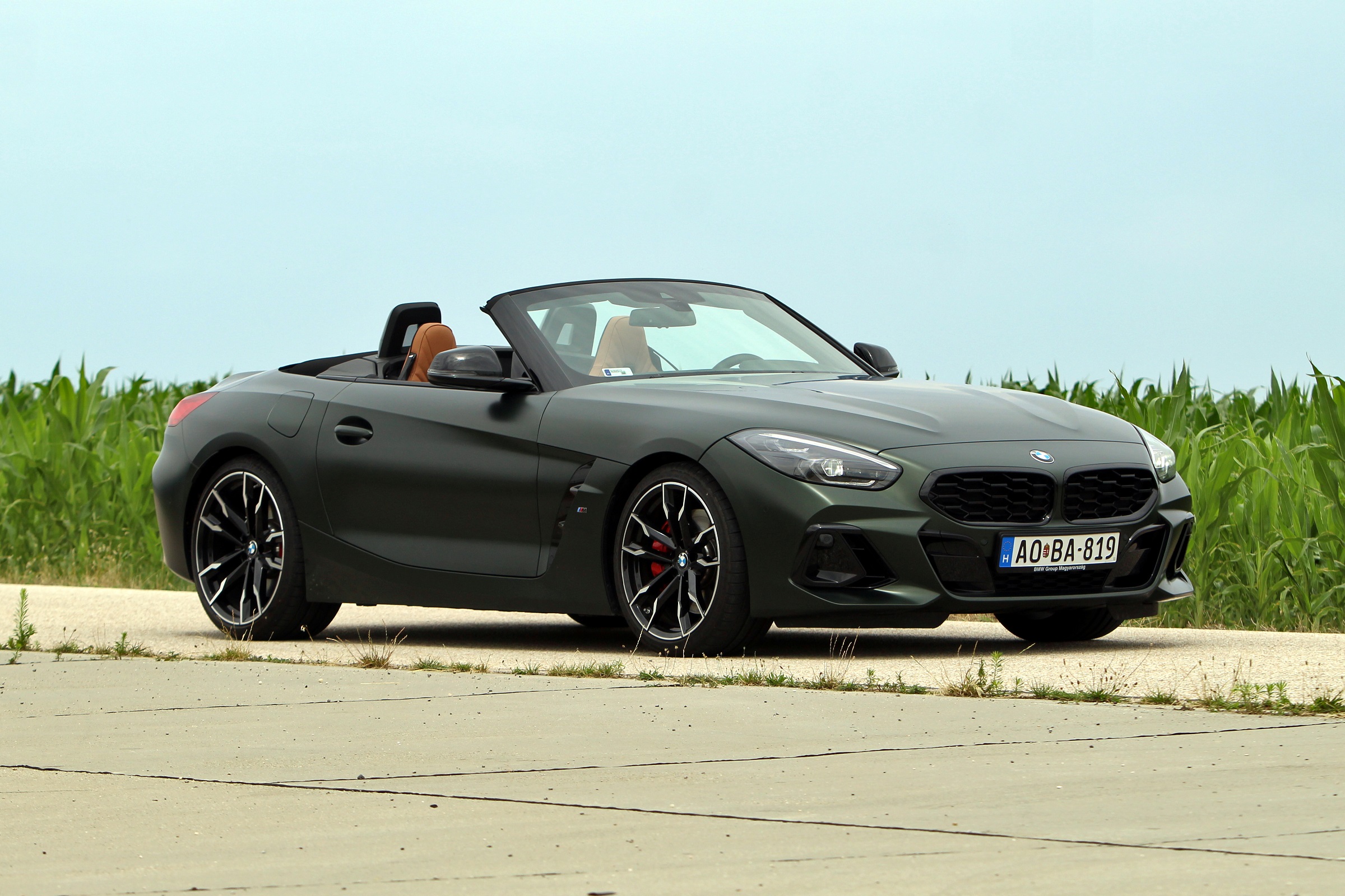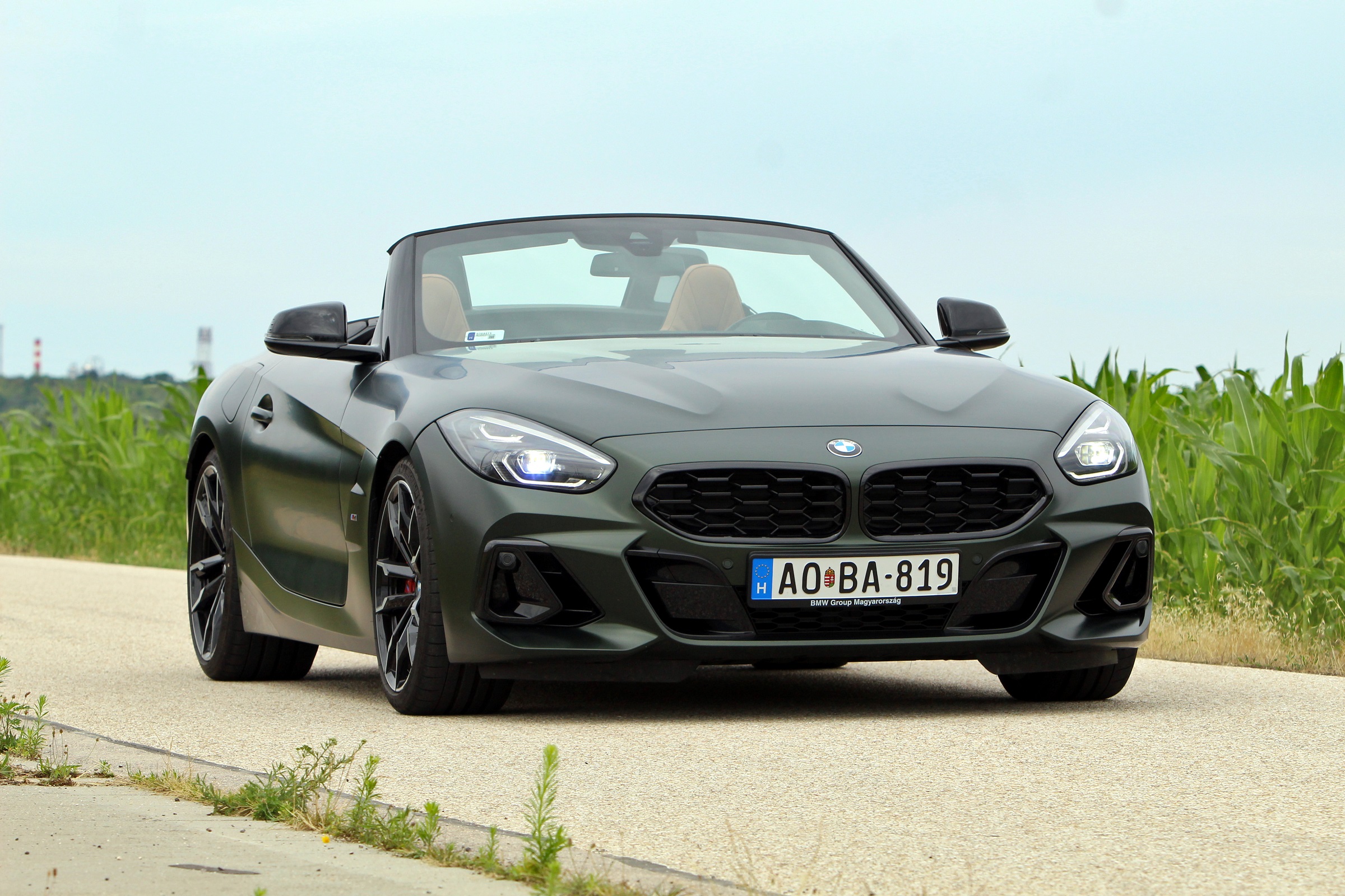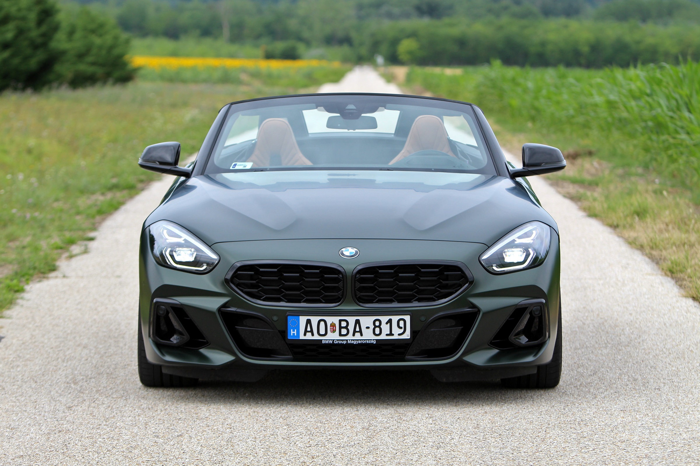 Ha ránézünk a tesztautóra, épp egy olyan harmadik generációs BMW Z4-et látunk, mint 2022-ben, a mindössze két év után érkező facelift után. A G29 kódnevű modell formavilága pár év után is abszolút újnak és fiatalosnak hat, annyiban ráadásul még meg is tudott újulni a 4324 mm hosszú, 1864 mm széles és 1304 mm magas autó, hogy két új zöld árnyalat is elérhetővé vált a kézi váltós Pure Impulse különkiadáshoz.