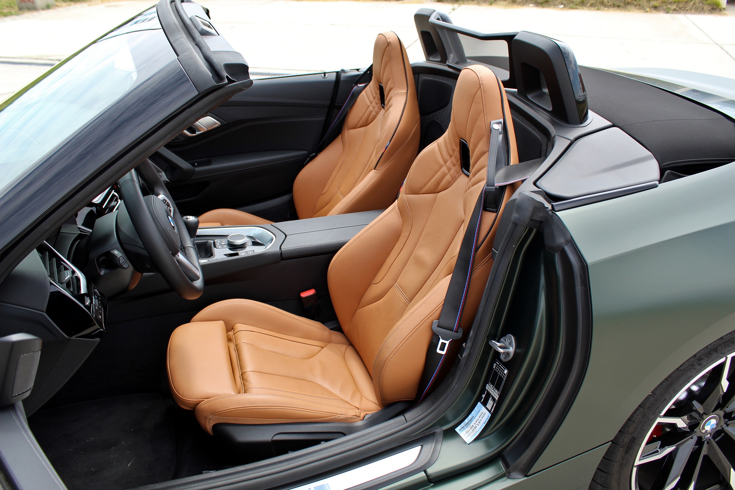 Technikai szemmel természetesen a hatfokozatú kézi váltó a Z4 M40i fő látványossága, de a BMW-nél természetesen arra is figyeltek, hogy a beltér is nyújtson megjelenésében valami extrát egy ilyen különleges modellváltozat esetében. Ezt jelen esetben a valódi eleganciát kölcsönző konyakszínű bőrkárpit jelenti, mely mellett megférnek az M-es jegyek is, beleértve a fekete üléskontúrt és a biztonsági öveket. Jó lett volna valami alternatíva a zongoralakk felületek helyett is, melyeken tető nélküli autózás után a por is hamarabb meglátszik.