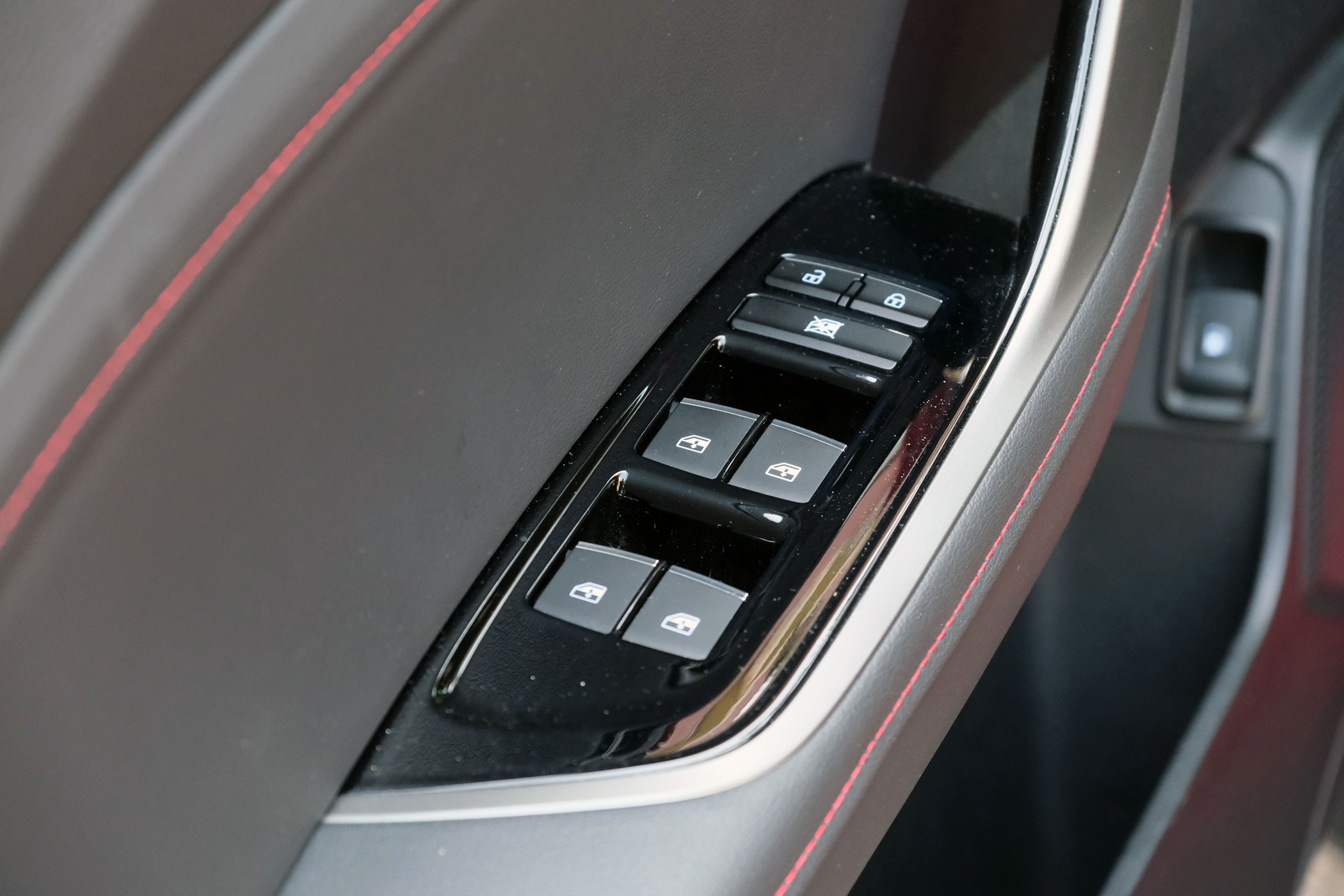 Elöl az ülés magassága csak egyben változtatható, jobb volna, ha az amúgy kényelmes ülés dőlésszöge is állítható volna billentéssel. A belső világítás mindkét üléssorban jó fényt ad, dicsérhető részlet a hátul is végigfutó, akadályérzékelős ablakemelő és az adaptív pohártartó, rugós támaszokkal különböző méretű ibrikeknek.