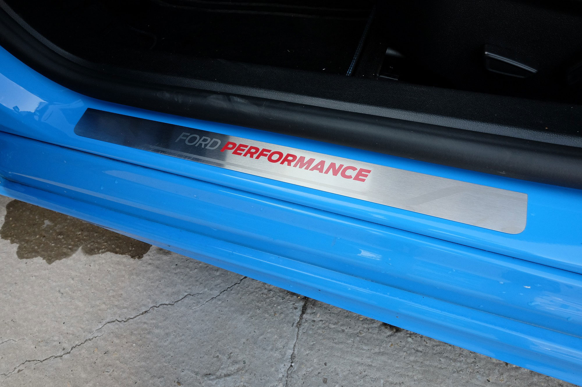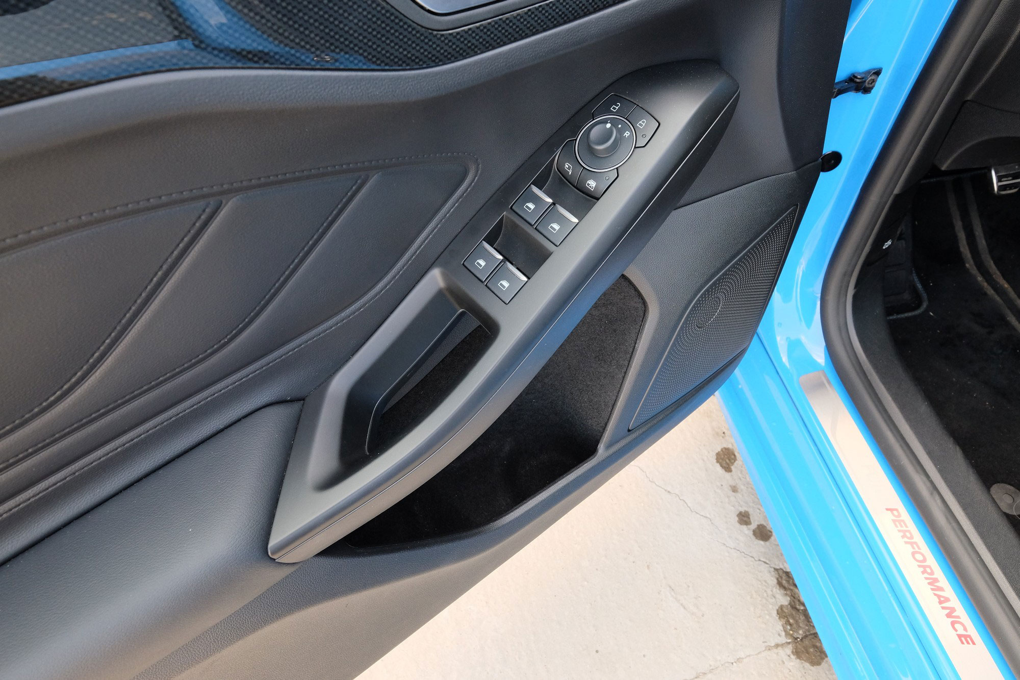 Alul kissé lapított formájú kormányának perforált bőr borítása jó fogású, és telerakták igazi gombokkal. Többek között egy S jelűvel is, ami az egyik legfontosabb funkciót látja el, ez kapcsolja a sportos vezetési módot. Az anyagminőség jó, az üléskárpit okosan olyan anyagból készült, ami nem csúszik. Az ülésekre hímzett és a küszöbre került fém plakett Ford Performance feliratán és az alupedálokon kívül más extra, a sportos génekre utaló jelzés már nem igazán tűnik fel a beltérben.