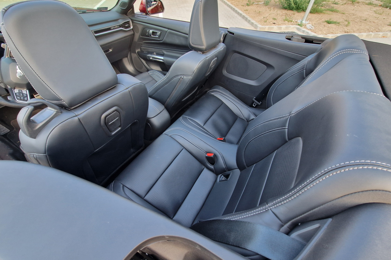 Az előző Mustang egyik gyenge pontja az ülése volt. Akkor az alapülés nem adott rendes tartást, túl puhára párnázták. Az extraként választható Recaro kiküszöbölte ezt, viszont ahhoz nem lehetett ülésszellőztetést választani, ami a kabrió esetében sokat dob a használati értéken. A mostani modell alapülése hozza a szellőzést, mellé pedig sokkal jobb a tartása. Állíthatósága nem akadálya, hogy alacsonyabbak vagy magasak is jó helyet találjanak benne.