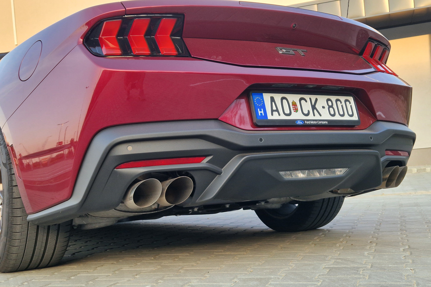 Megvan a versenyautós utalás is, hiszen a splitter, a küszöbélek, a motorháztető hűtőnyílása mind azt segíti, hogy kihozzuk a maximumot az autóból. Pedig ez csak az alapmodell, nem Dark Horse, pláne nem a rendszámos versenyautóként leírható GTD.