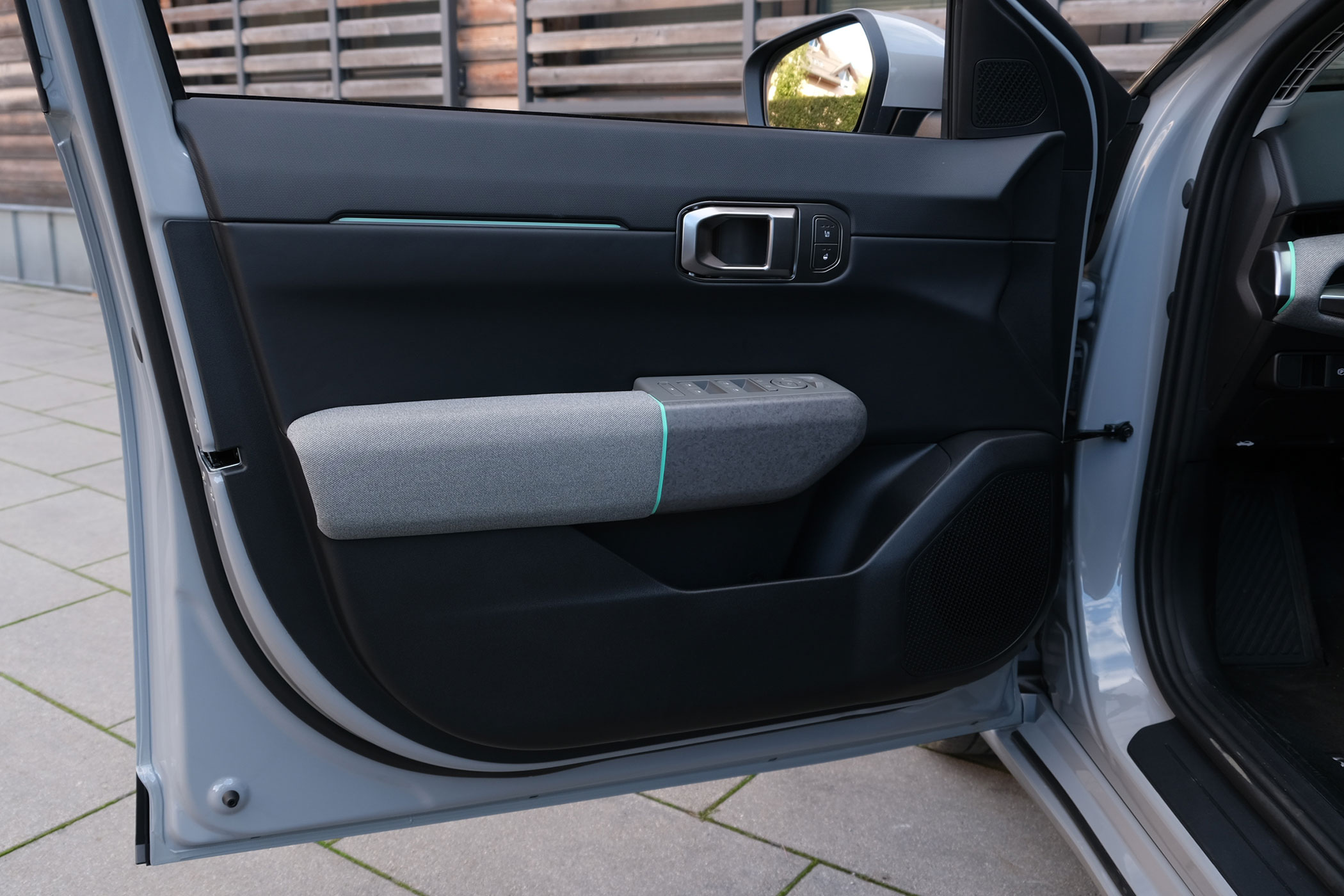 Minőségérzetre csak átlagos az utastér, de azzal vigasztalódhatunk, hogy sok az újrahasznosított alapanyag. A nagyon hosszú tengelytáv és a villanyautós adottságokat kiaknázó térkihasználás igazán szellős utasteret teremt, elöl jó üléshelyzettel.