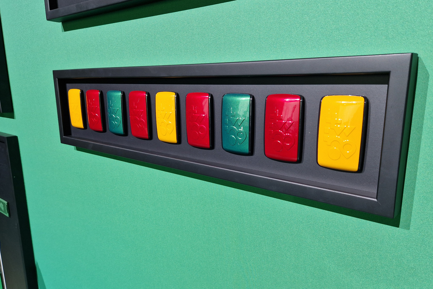 Ezek a színek visszaköszönhetnek a két ülés közé kérhető 3D nyomtatott elemeken is, egy kis doboz, illetve egy palacktartó kerülhet ide. Szintén karosszéria színű lehet az autó „kulcsának” borítása is.