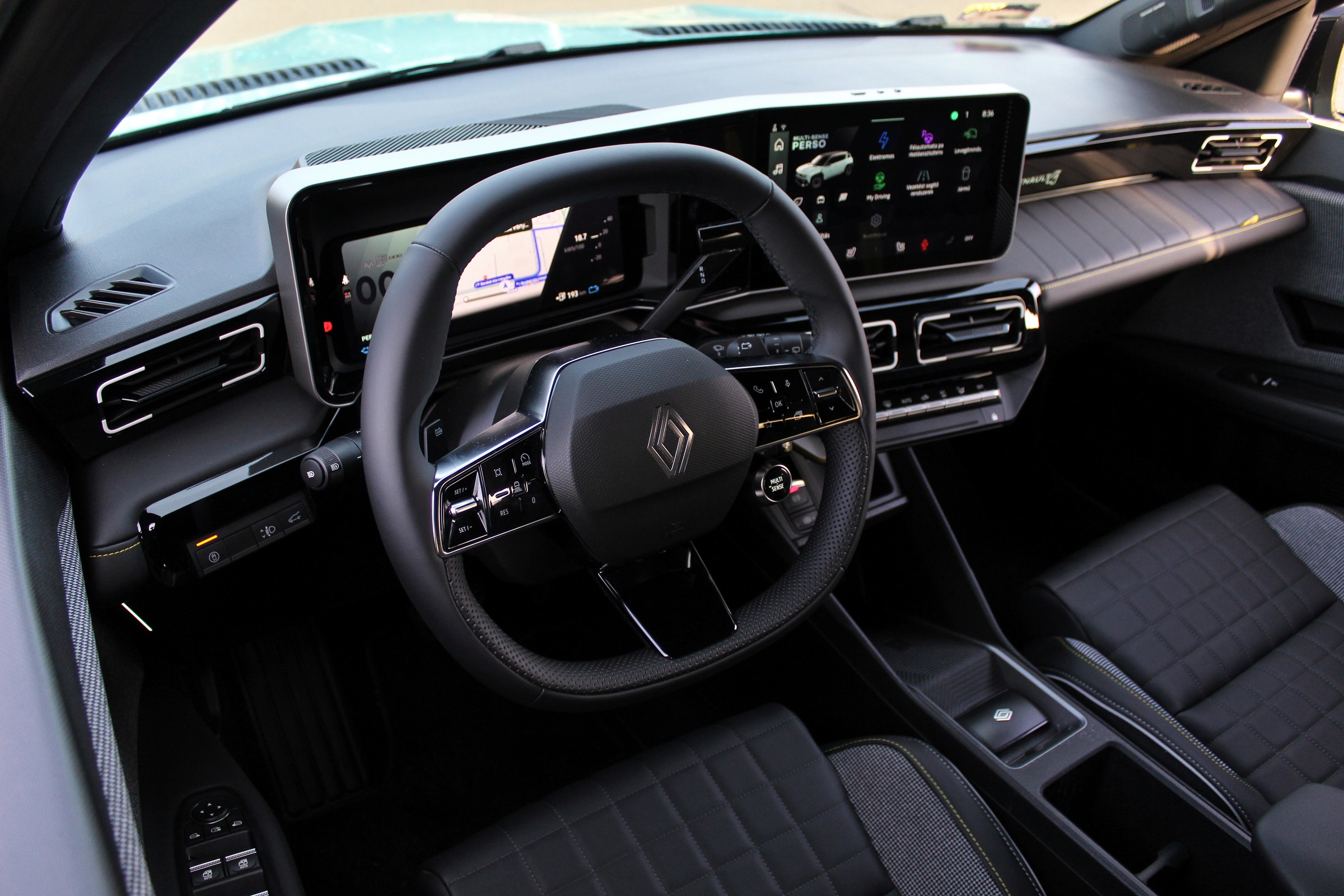 Maga a vezetői környezet hozza a napjaink Renault-modelljeiben megszokottakat. A multikormány nem csak az R5-ből ismerős, már a Rafale-ban is ilyet láttunk, jobb oldalon az üzemmódválasztó Multi Sense gombbal. Nem szokatlan a jobb oldali bajuszkapcsolóra költöző menetválasztó kar sem, mely így nem a középkonzol tárolóitól vesz el helyet. Itt egyébként 6 liternyi rekesz van, de egy vezeték nélküli mobiltöltő is elfért még.