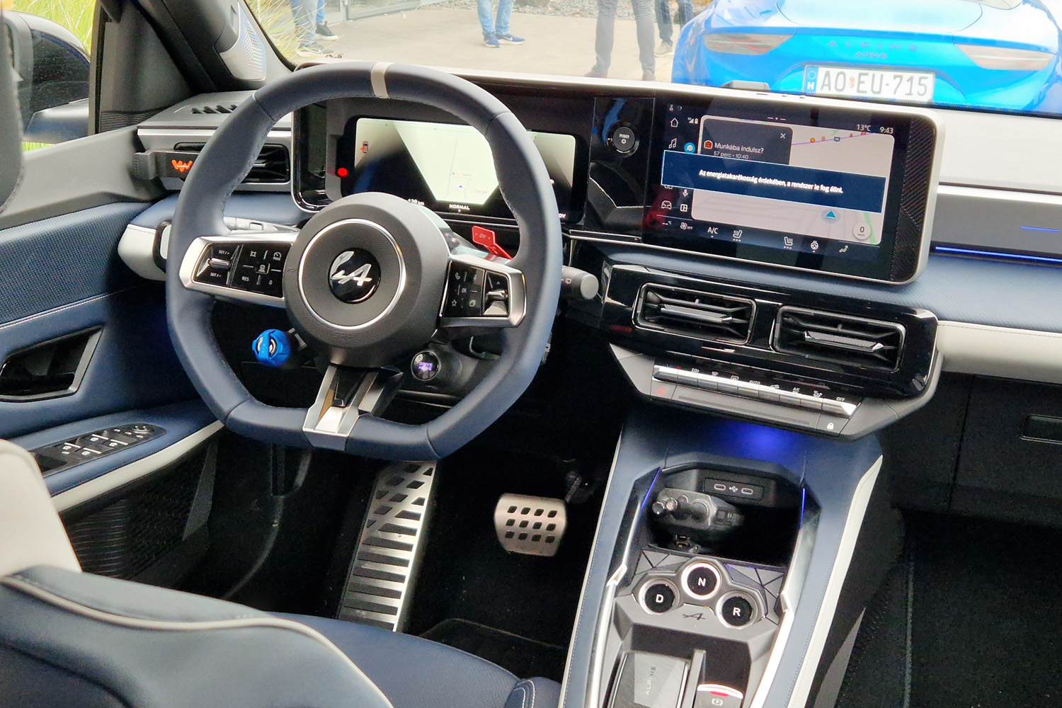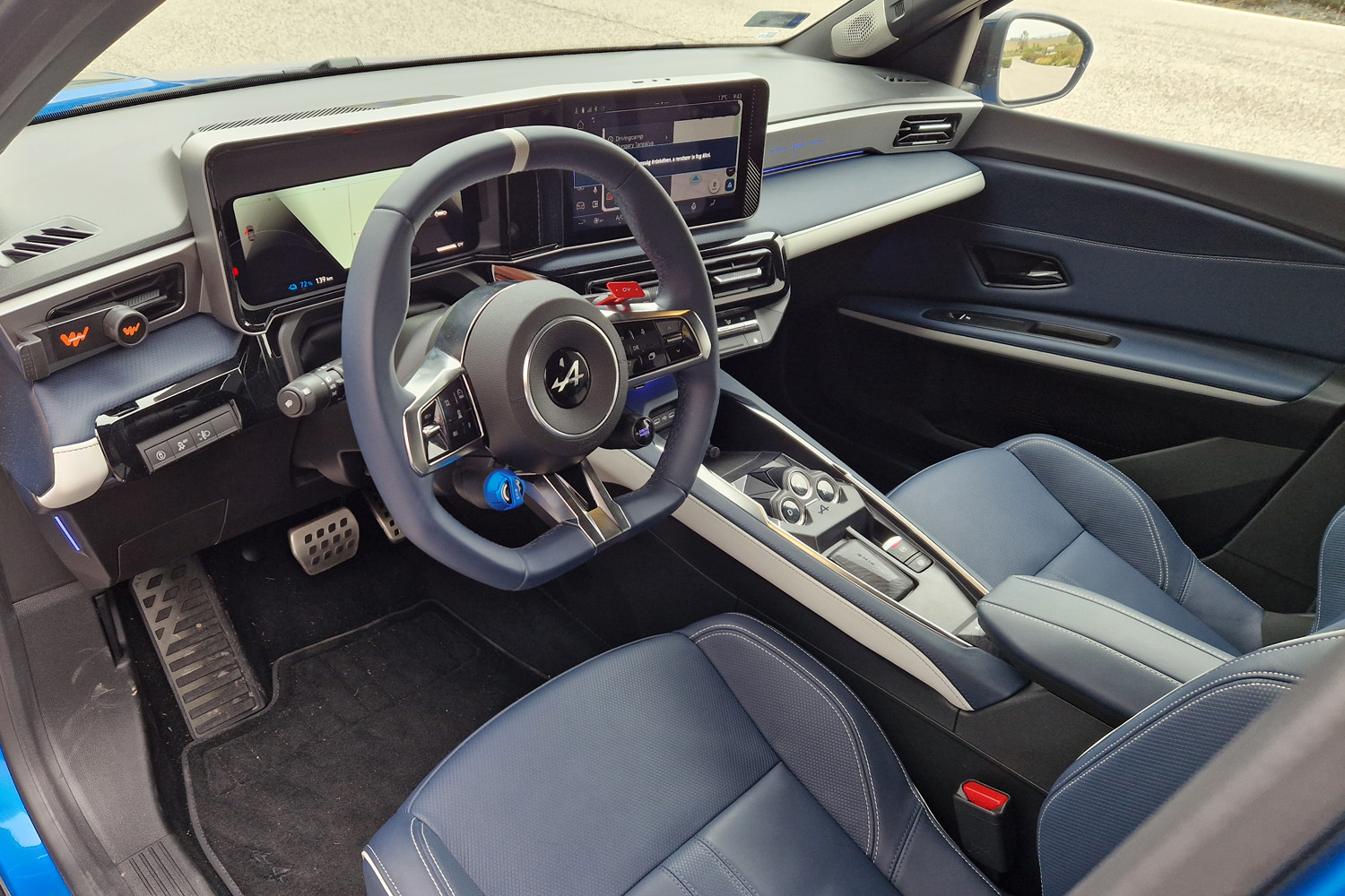 10,3″ a szép grafikájú óracsoport és 10,1″ a középső kijelző képátlója. A kormányközép kérhető Alpine-kékben is, amiről a képgalériában találtok fotót