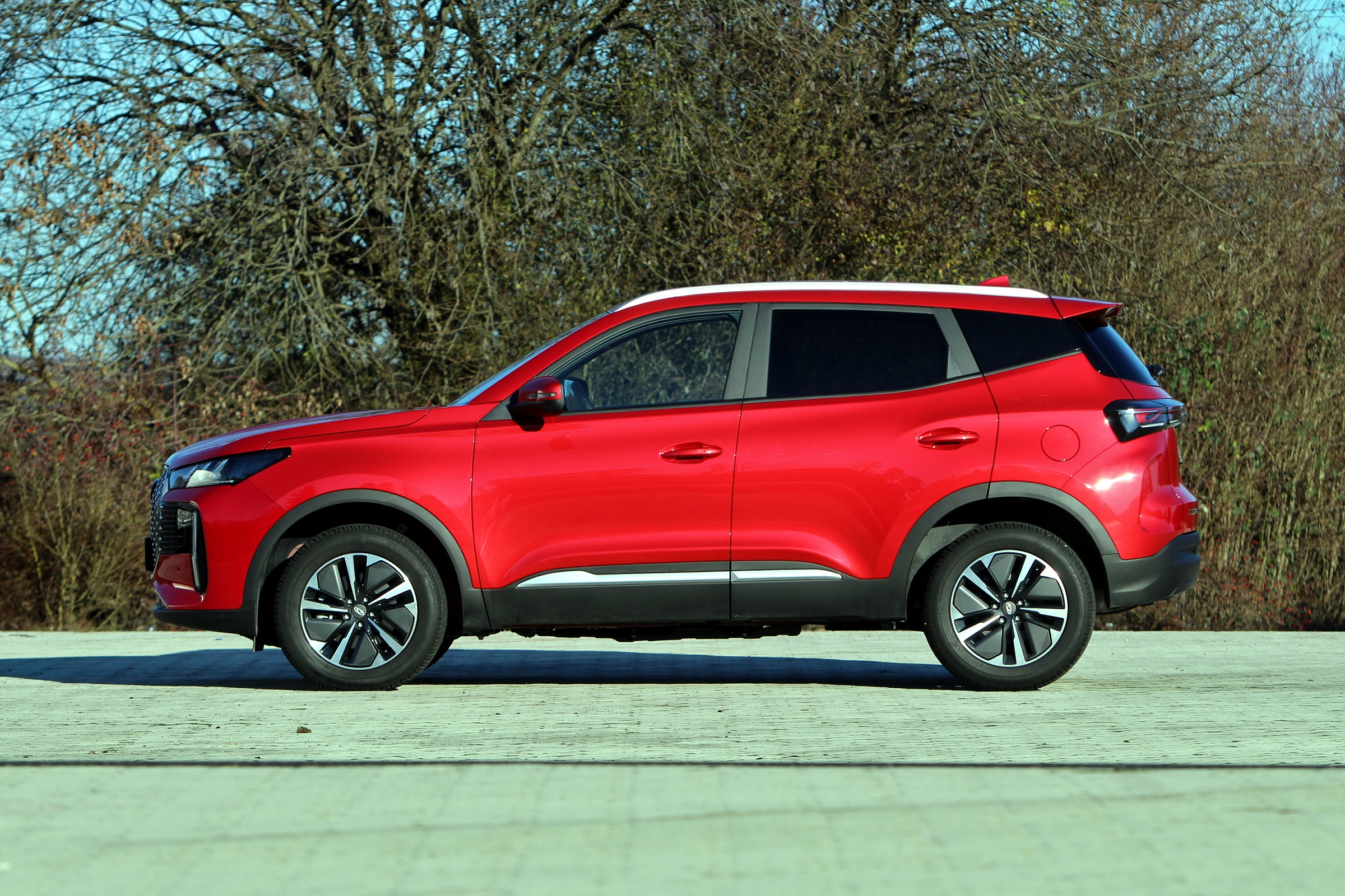A tavaly nyár végi belépőt két modellel ejtette meg a Chery, a Tiggo 7-essel és a Tiggo 8-assal, de a kínálatuk mára megkétszereződött. Itthon egyelőre a szabadidő-autóikat forgalmazzák, Tiggo X néven, ahol az X a SUV méretét jelölő szám, a Tiggo előtag pedig a formát jelöli. (Arrizo névvel kínál szedánokat is a Chery, már ahol árulják.) Tesztünk alanya a tornasor végén álló, Dacia Duster- és Suzuki S-Cross-méretekkel rendelkező Tiggo 4, orrában hibrid erőforrással.