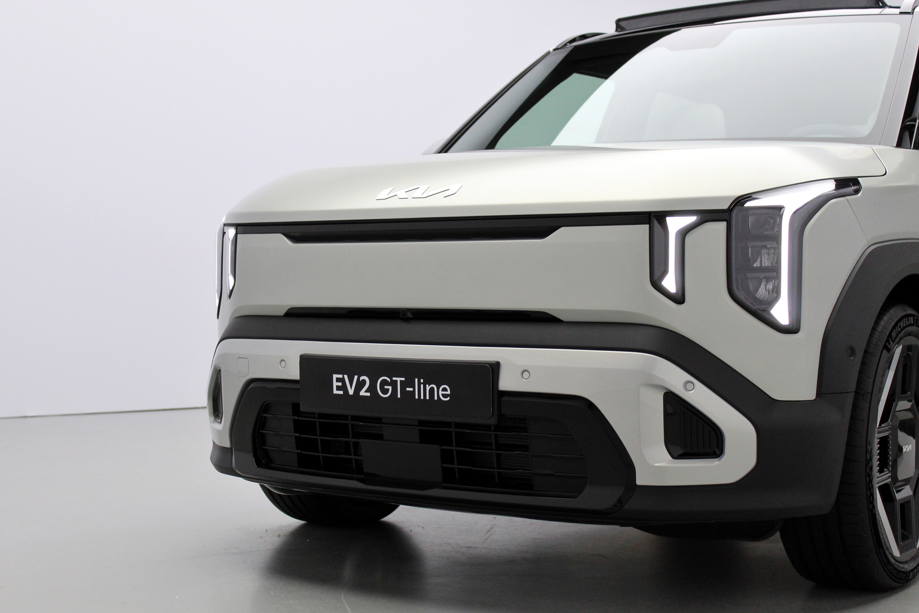 Aki látta kívülről a Kia EV2 koncepcióváltozatát, az szinte a kész modellt látta. A dél-koreaiak tervezőcsapata mindent átemelt a tanulmányautóból a gyártásra kész kis szabadidő-autóba, amit csak tudott. Gyakorlatilag csak a hűtőmaszk szellőzőinek kivágása, valamint a kilincsek azok az elemek, melyek nem így néztek ki korábban.