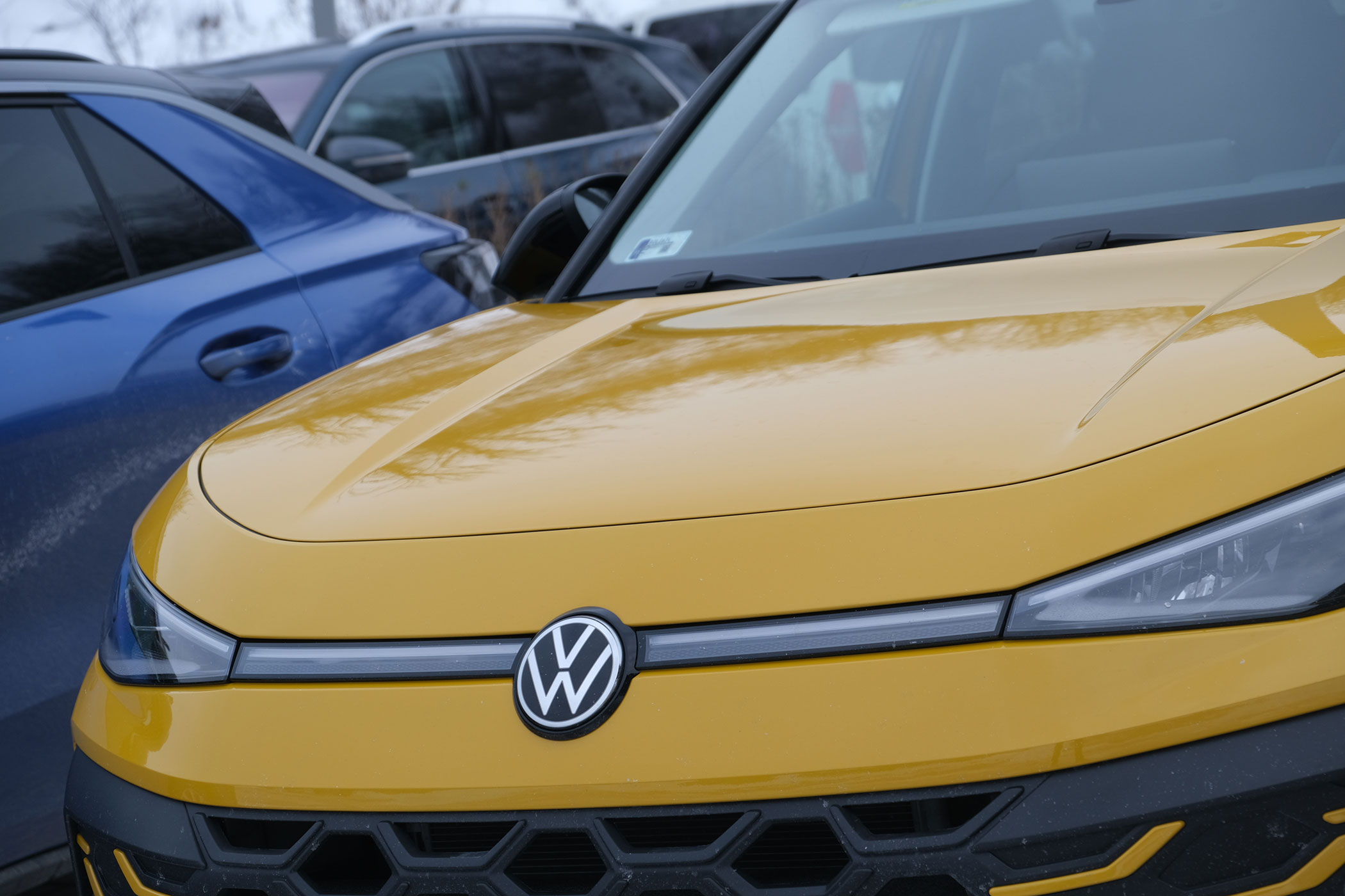 Ha az EU-országokban értékesített autókon a dizájnerek meg szeretnék világítani az emblémát, ezt csak úgy tehetik meg, ha a logót egy-egy fénycsíkkal össze is kötik a fényszórókkal, ezért van ennyi új autó orrán világító fehér pálca, mint itt is. A hátsó VW jel pirosan világít.