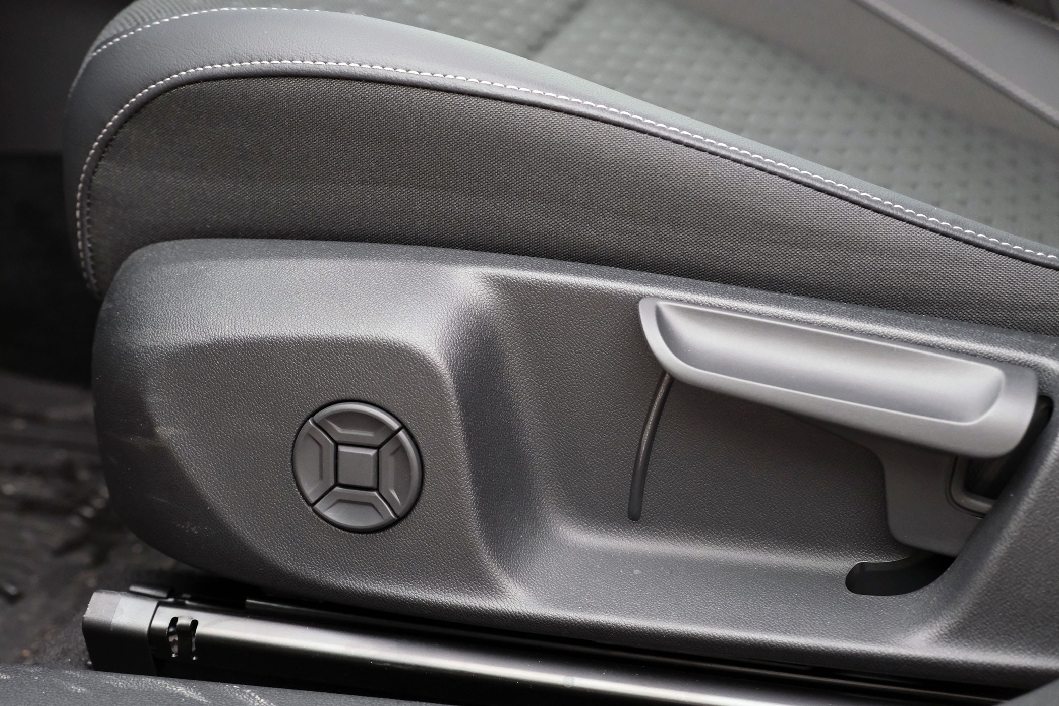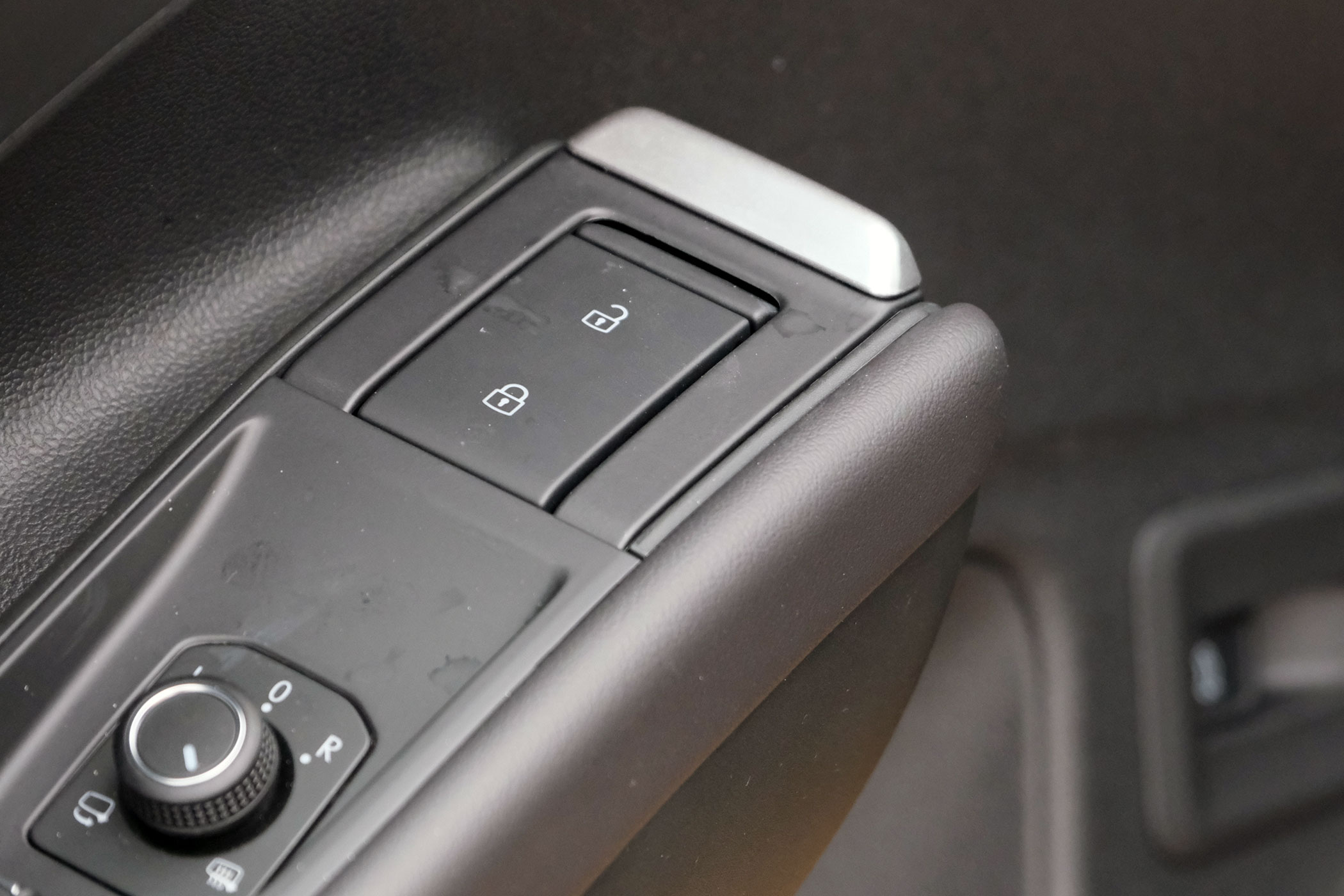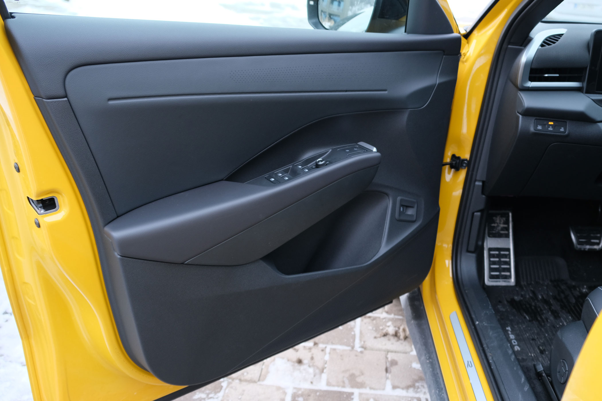 Szokatlan a könyöktámasz elejébe, a tükörállítás joystickje elé helyezett kilincs, a felbillenő kilincset elsőre nehezebb volt használni, mint az ajtókárpitban lévő kart, de csak hosszabb távon derül ki, hogy mennyire használható. A telefonunkat vezeték nélkül is összekapcsolhatjuk az autóval, az Android Auto és az Apple CarPlay is fut wifin.