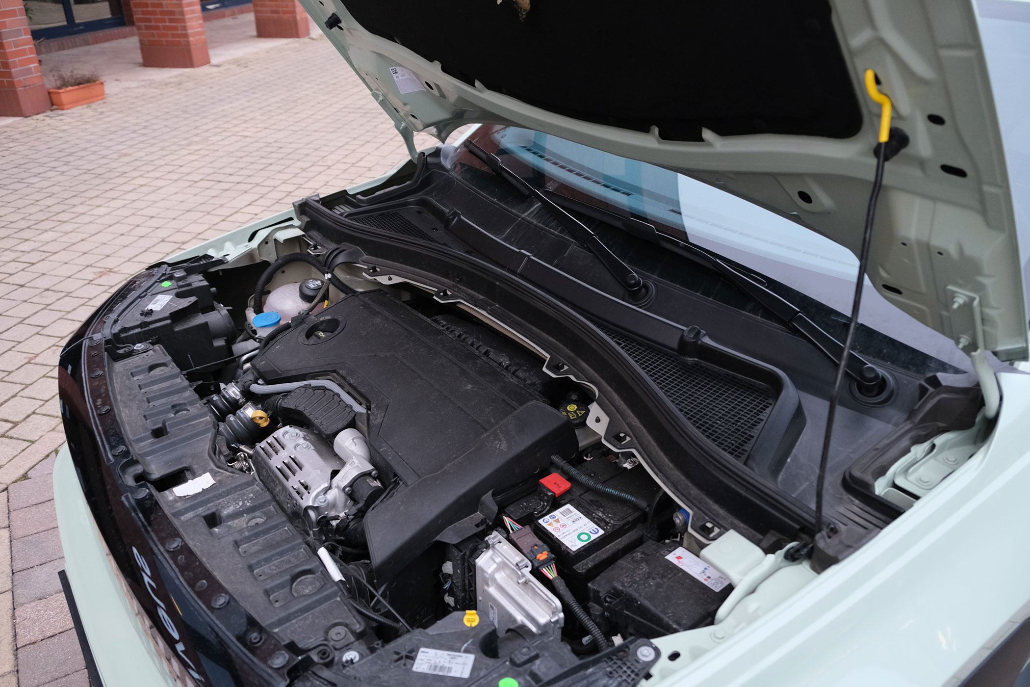 9,6 millió Ft a tesztelt modell listaára, de fémpálca tarja a motorházfedelet a sorhármas turbós benzines felett. A motor 101 lóerős