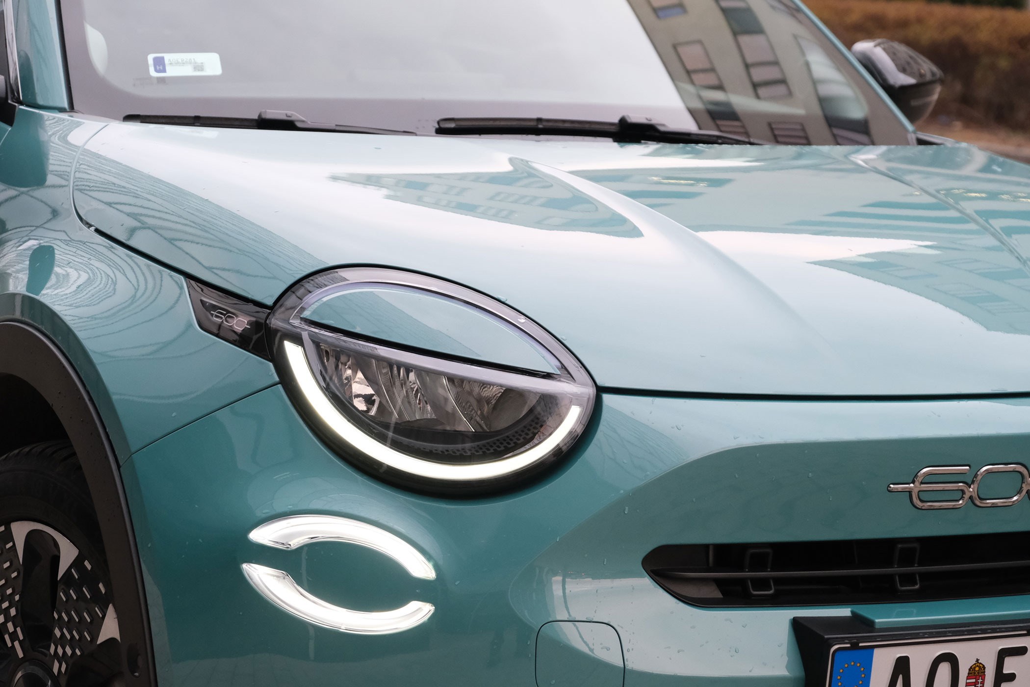 4178 milliméterével a tesztelt FIAT 600 alig növi túl a Suzuki Vitarát. Szélessége 1779, magassága 1525 milliméter. A tengelytávolság 2552 mm. Ezen az autón még a korábbi hátsó lámpákat látjátok, a 2026-os modellévre a FIAT 600 az Abarth sportváltozatból átvett hátsó lámpákkal szépül meg.