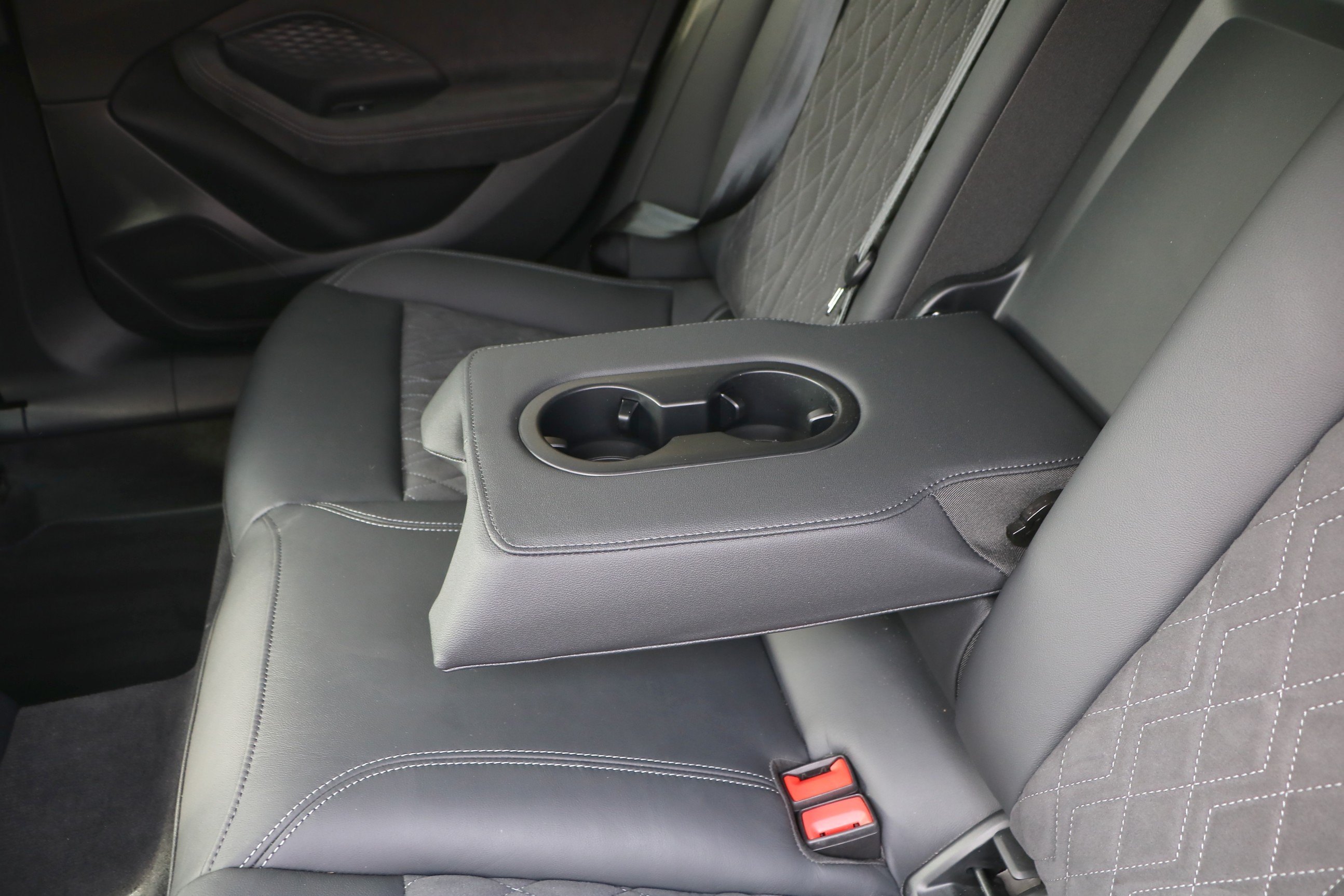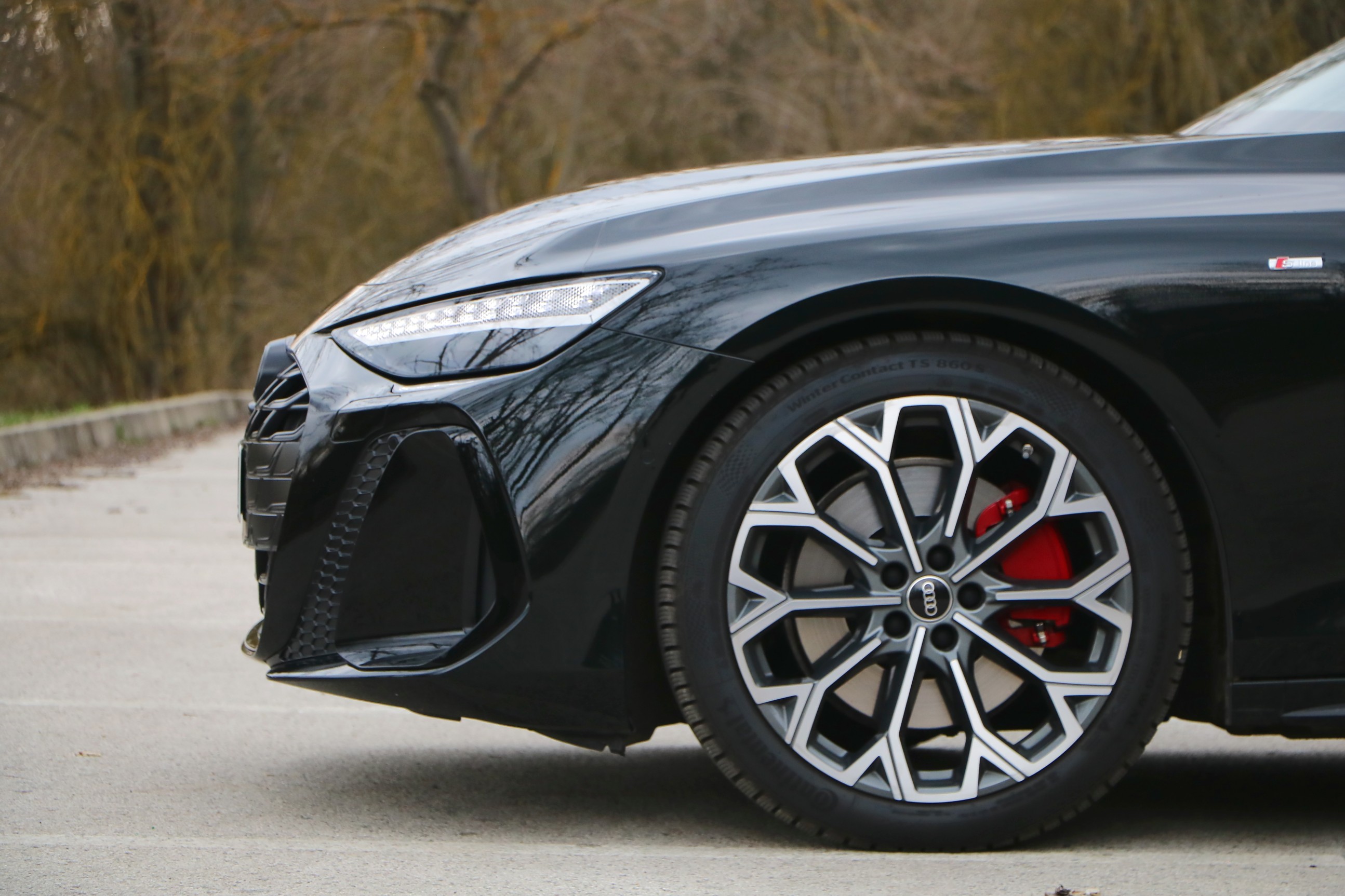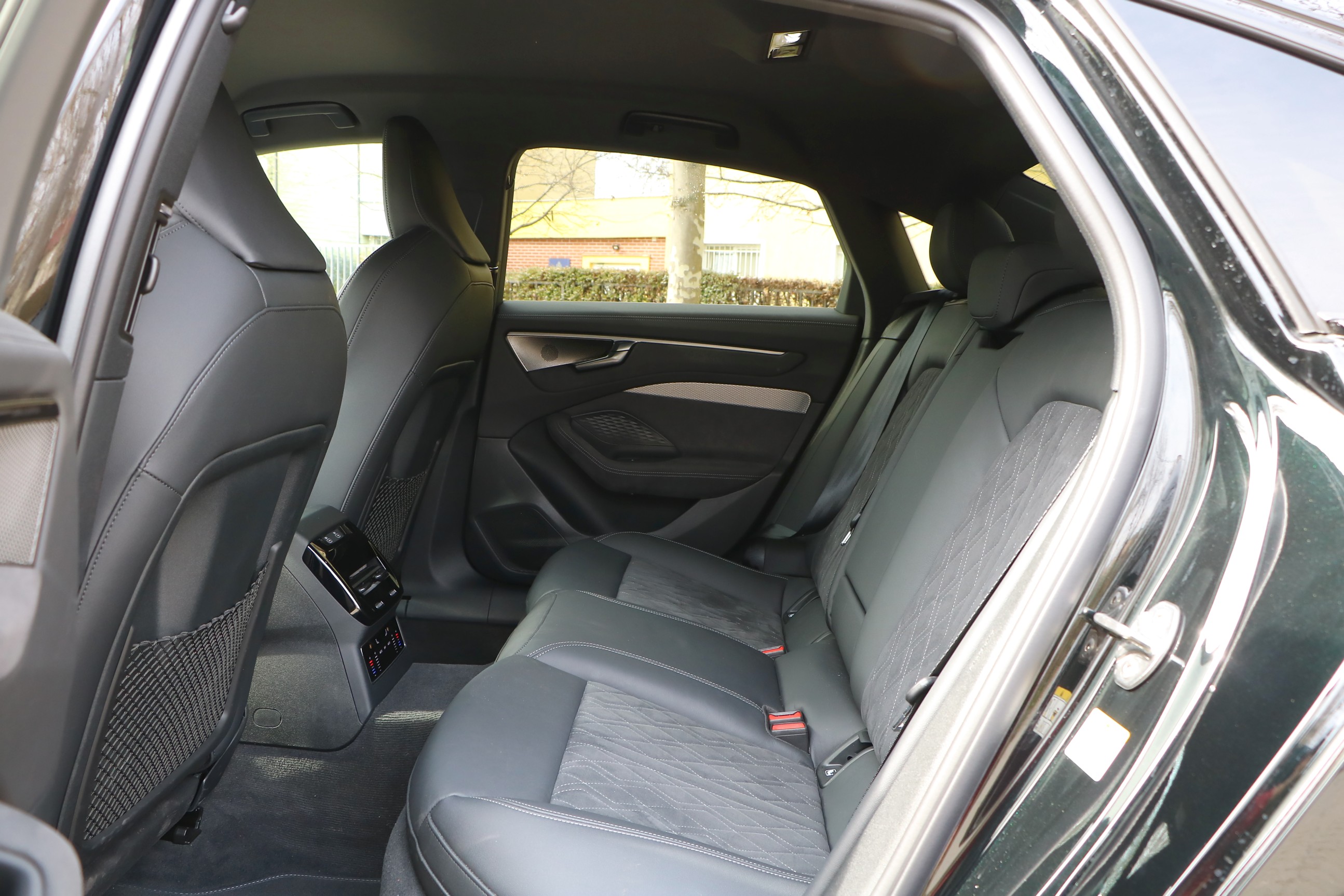 Elöl a térkínálat hozza amit egy ekkora autótól elvárunk, széles a könyöklő és a középkonzol, tág határok között állítható az amúgy elég sportos, alacsony üléspozíció. Maguk az S-line ülések a beltér kiemelkedő darabjai, finom kidolgozással, szép részletekkel, kihúzható combtámasszal.