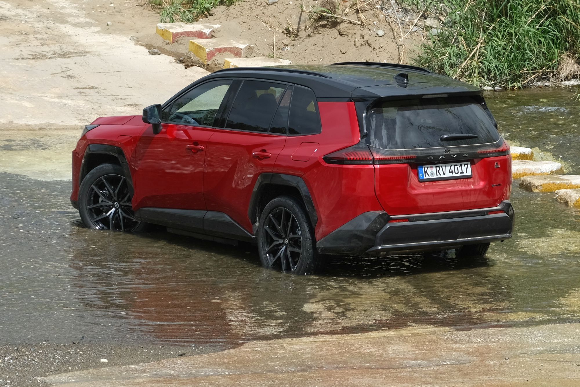A lemezek, kárpitok alatt viszont valójában nagyon is sok minden új, vagy legalábbis frissített. Ahogy a Cliónál, hét teljes gyártási év után a RAV4-nél is számtalan kisebb-nagyobb fejlesztésre volt szükség a fedélzeti elektronikát illetően ahhoz, hogy aki az elkövetkező években vesz meg egy ilyen autót, számíthasson rá, hogy kocsija még sokáig korszerűnek számít majd és jól megőrzi értékét, amikor második-harmadik tulajdonosához kerül. Emellett a hibridlegendának számító Toyota számára létkérdés volt, hogy a konnektoros hibrid változat képességeit is feltuningolja, új akkumulátorral, új, erősebb, gyorsabb töltéssel ismét vonzóvá tegye a versenytársaihoz képest. Az új Toyota RAV4-et Dél-Spanyolországban próbálhattuk ki, kanyargós vidéki utakon, városi és autópályás forgalomban, sőt, még egy patakban is.