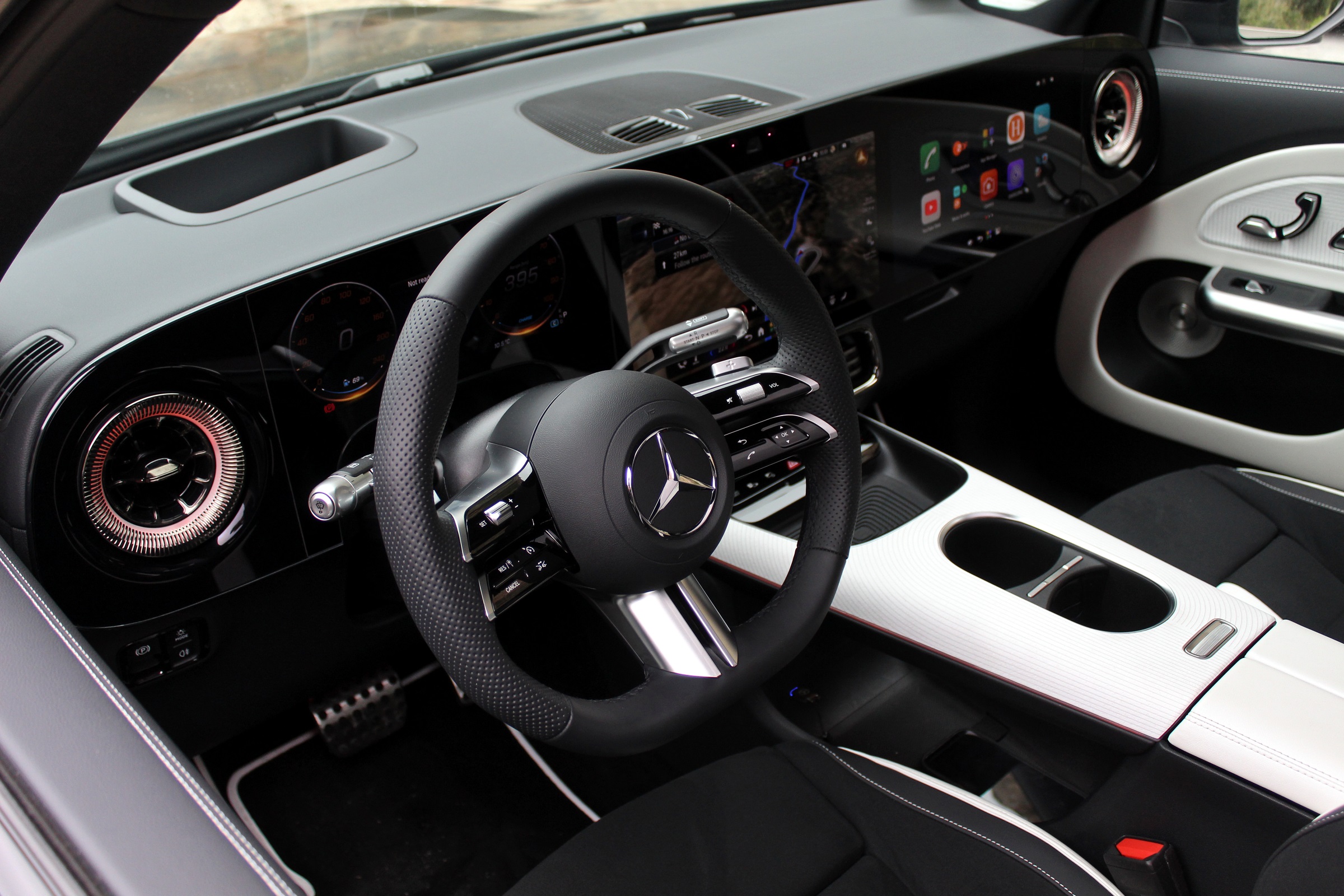 A kijelzőrendszerre új operációs rendszert fejlesztett a Mercedes-Benz. MB.OS névre keresztelt rendszerükre rengeteg app letölthető, képminősége pedig remek, hála a háttérben dolgozó Unity videojáték-motornak. Az igazi nagy dobás azonban nem ez, hanem az, hogy több mesterségesintelligencia-rendszert is aktívan bevetnek. Egyfelől beágyazták a Google Geminit, ami a Google Térképre alapuló navigációnál is segít, másrészt a ChatGPT is velünk utazik. Ha kérdezünk valamit az autótól a Hey, Mercedes megszólítás után, és azt a GLB meg is érti, akkor a legjobb választ kaphatjuk – feltéve, ha van netünk és hálózati lefedettségünk. Mallorca hegyei közt utóbbi nem mindig volt adott.