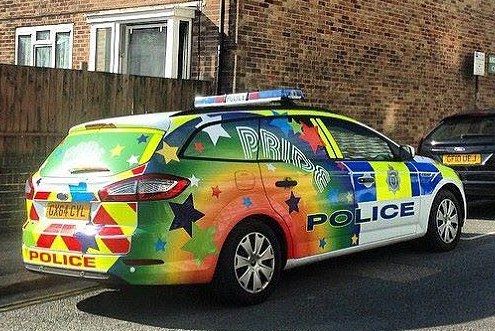 Szolgálunk és védünk – na meg elfogadunk, tehetnék hozzá az angliai Brighton rendőrei, miután egy járőrkocsit és egy rendőrmotort is átmatricáztak az idei, sorban huszonötödik Brighton Pride tiszteletére.