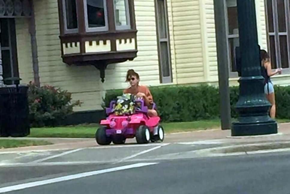 Akár 8 km/órával is száguld rózsaszín játékautóján Tara Monroe, a texasi egyetem húszéves hallgatója, és nem érdekli, hogy erről kinek mi a véleménye.