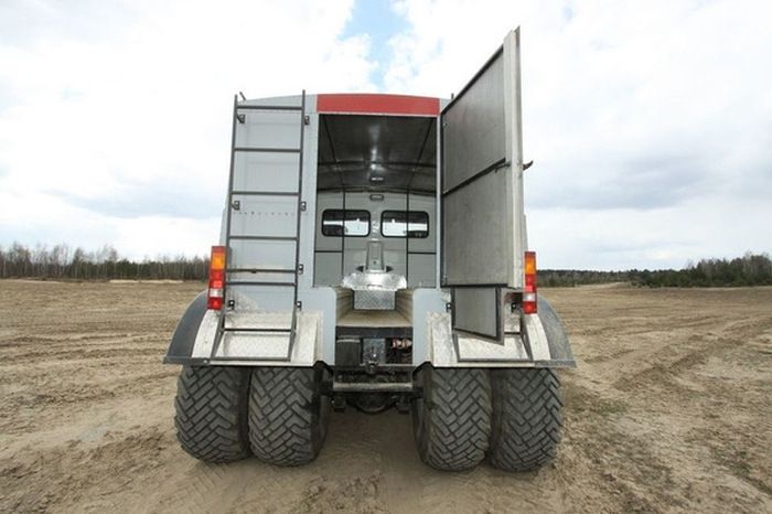 A háromtengelyes terepgyilkos MAZ alvázon nyugszik, tankja 90 literes és ha ezt teletöltik gázolajjal, körülbelül 900 kilométert tud megtenni tankolás nélkül. Persze ez nagyban függ a terepviszonyoktól.