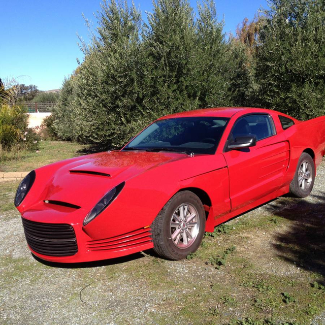 Oldalról nézve feltűnik, hogy a kerekek sem gyáriak, a kipufogócső pedig a hátsó tengely előtt bújik ki. A hátsó részt szintén átalakították, új lökhárító és diffúzor került a szebb napokat megélt Mustangra.
