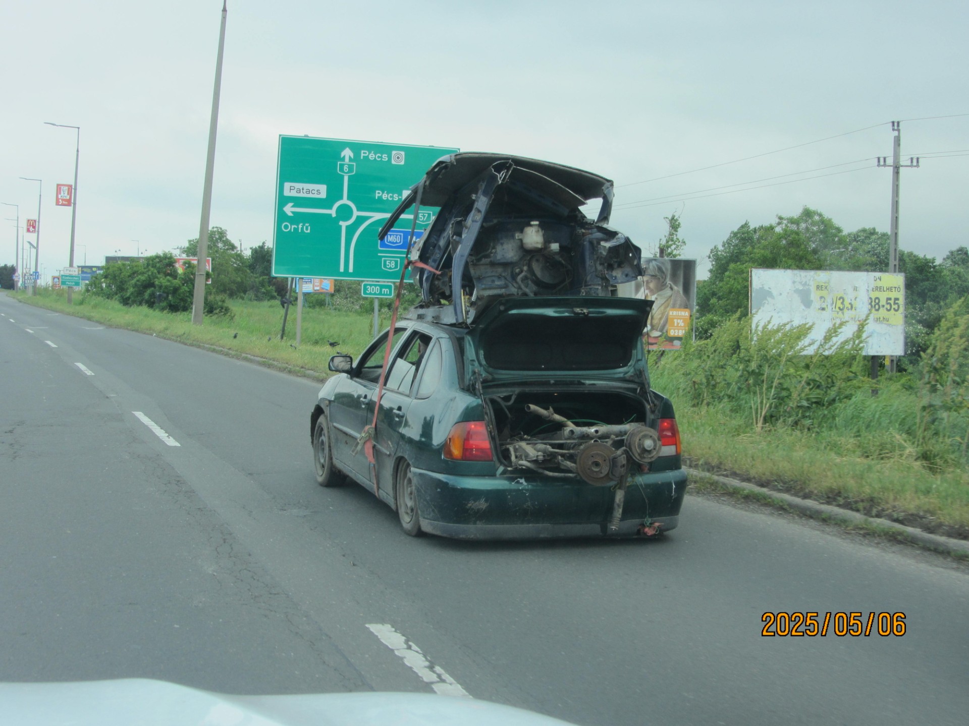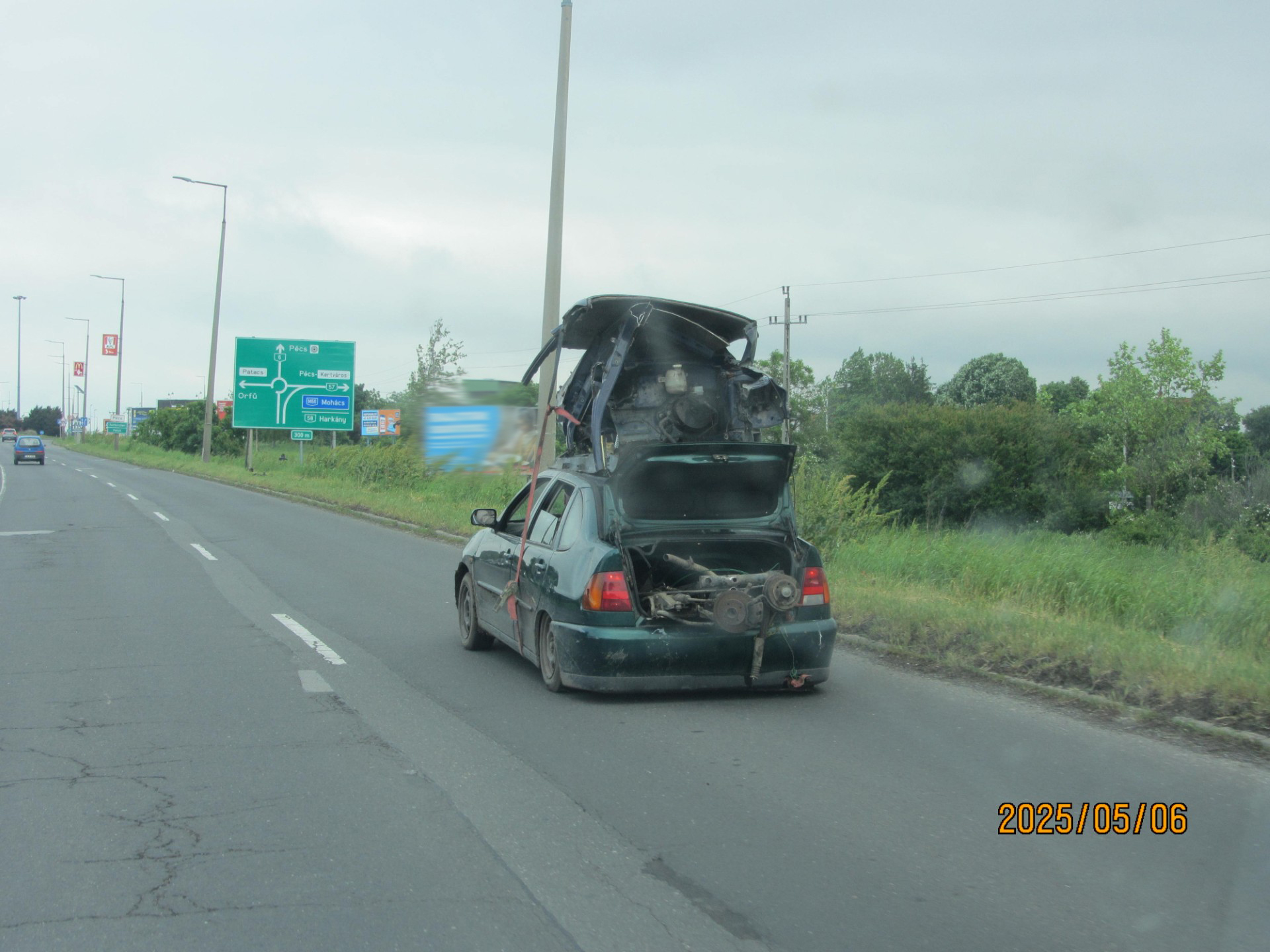 Pécsnél közlekedett ez az autó, amelynek nemcsak a tetején, hanem a csomag- és utasterében is bontott alkatrészek voltak, de olyan mennyiségben, hogy a tuningműhelyek is megirigyelnék ezt az ültetést.