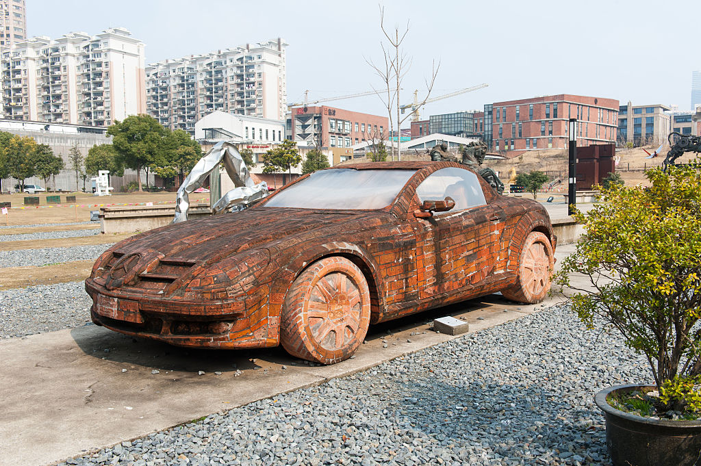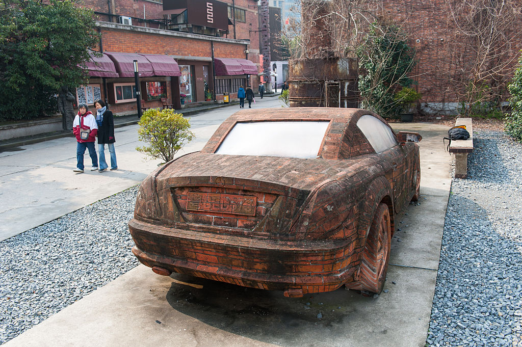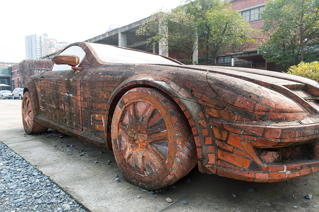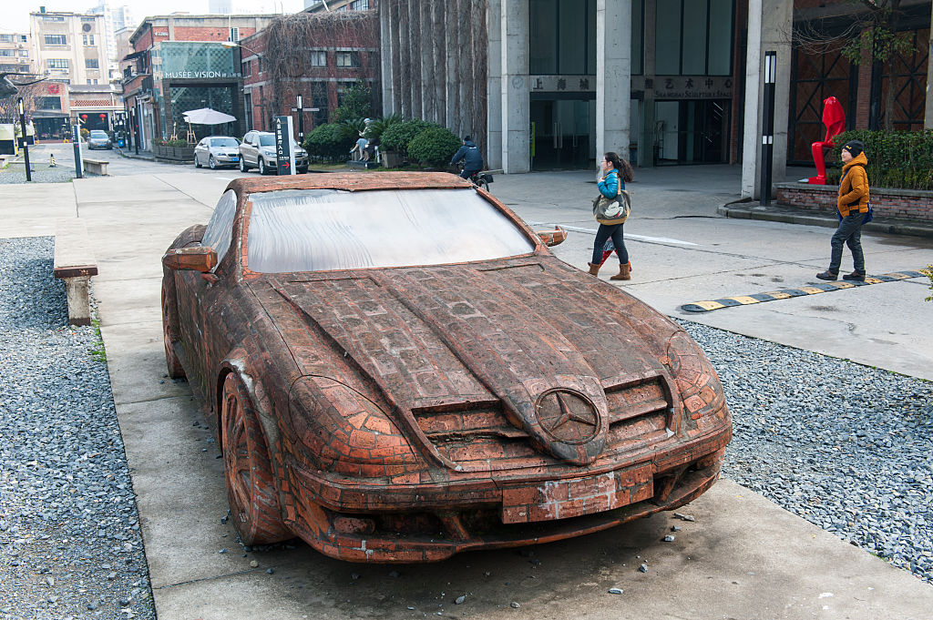 A sanghaji Red Town Creative Parkban – a hajdani acélgyárból kialakított szobrászati és dizájnközpontban – látható egy életnagyságú, vörös téglákból, cementből és acélvázból épített Mercedes‑Benz SLK.