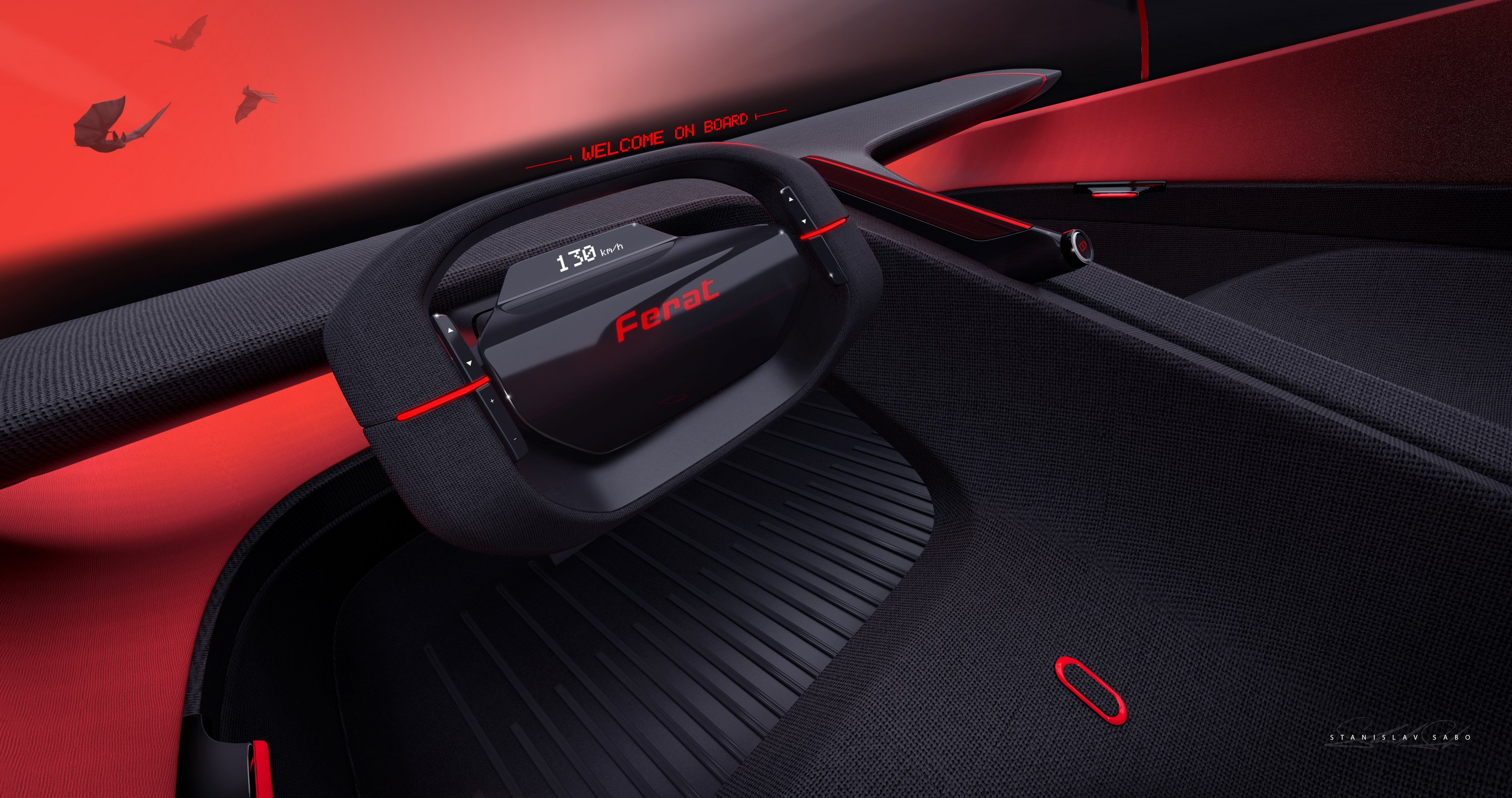 Az alapszín maradt a fekete, amit ezúttal bőségesen alkalmazott pirossal egészítettek ki. Az eredeti modellből emelték át a T-alakú vezetői környezetet, a hátsó szárnyból azonban csak a függőleges elemeket tartották meg. Összességében jó adag Batmobil-DNS is került a mixbe, de a helyzet ugyanaz, mint 1982-ben: habár nyilvánvaló, hogy a 2025-ös Ferat még részleteiben sem fog megvalósulni, jót tesz a márka megítélésének ez a kis … hmmm … vérfrissítés.