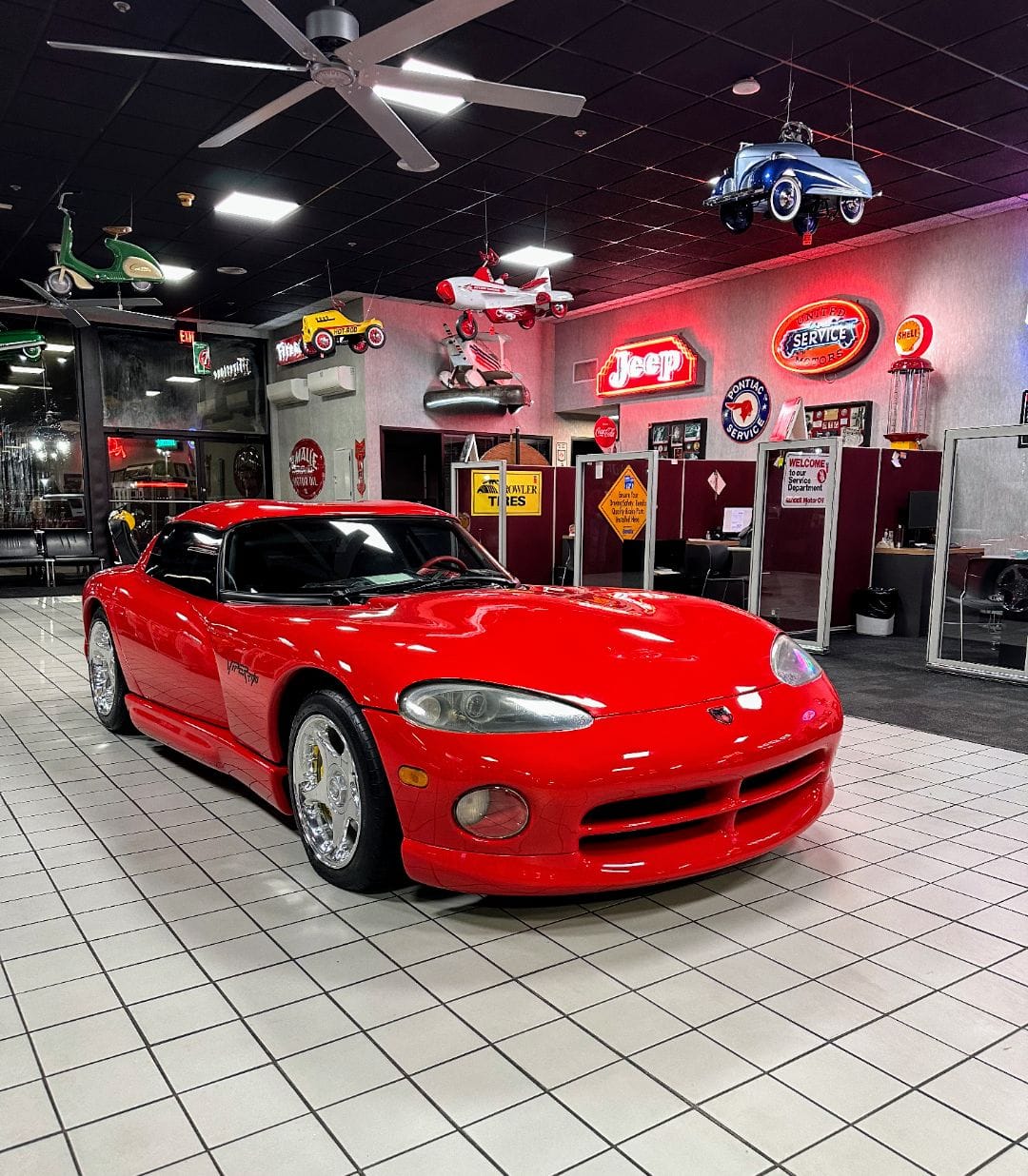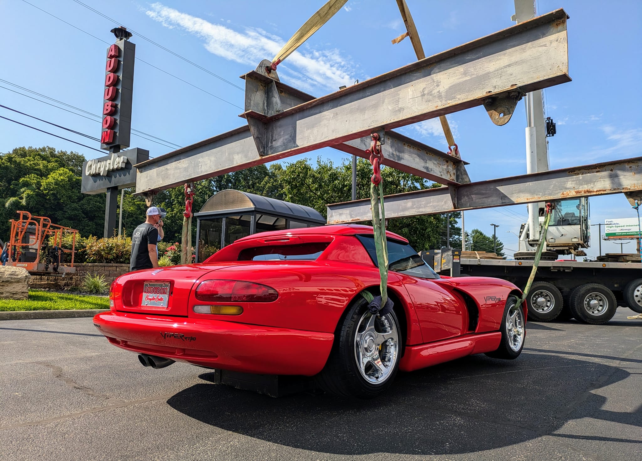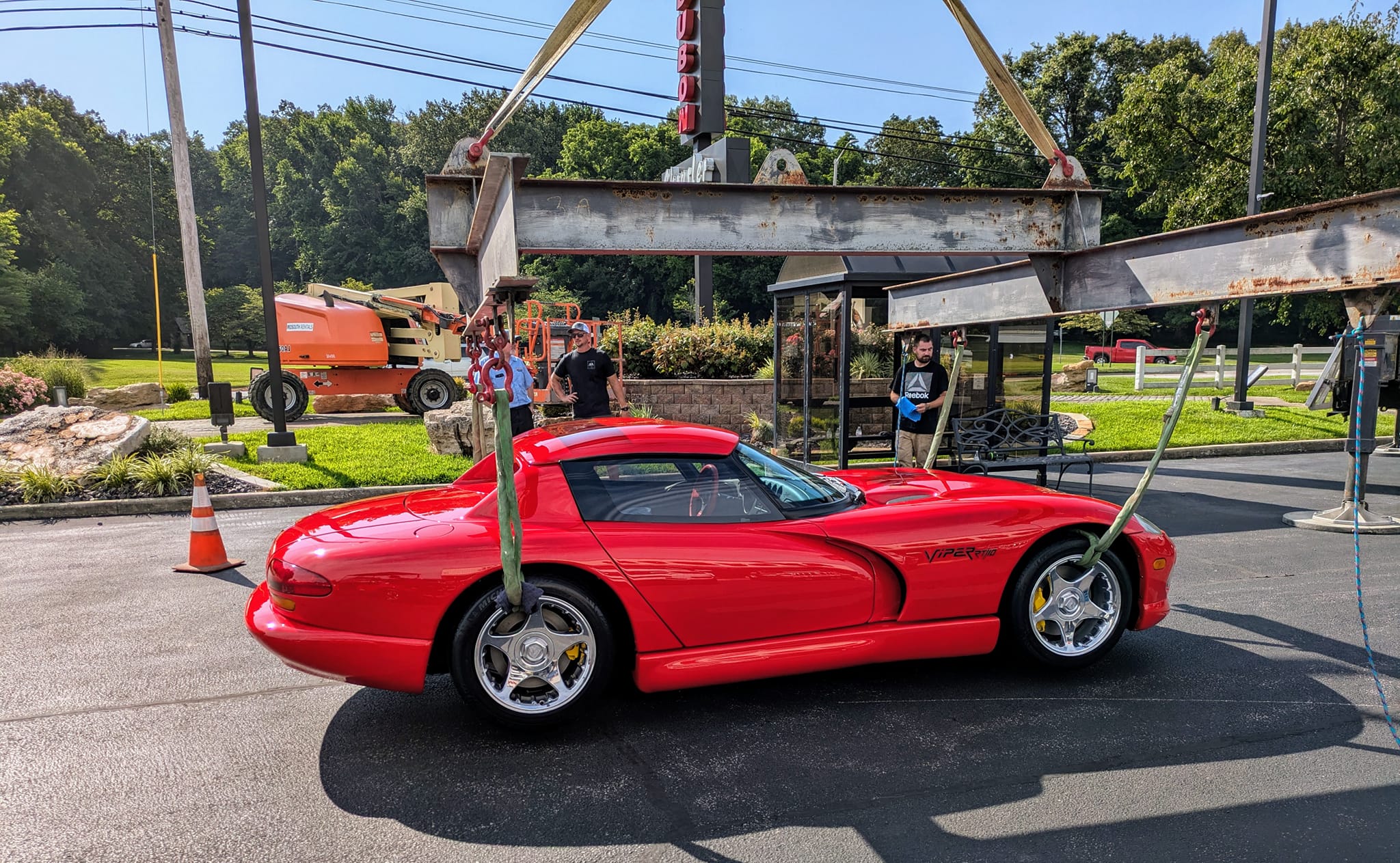 Az 1996-os, V10-es motorral szerelt Dodge Viper RT/10 vadonatúj állapotban került a tábla tetejére. A kereskedés egyik munkavállalója, Alec Girvin szerint az autó mindössze 19 kilométert futott, mielőtt 1996-ban a magasba emelték.