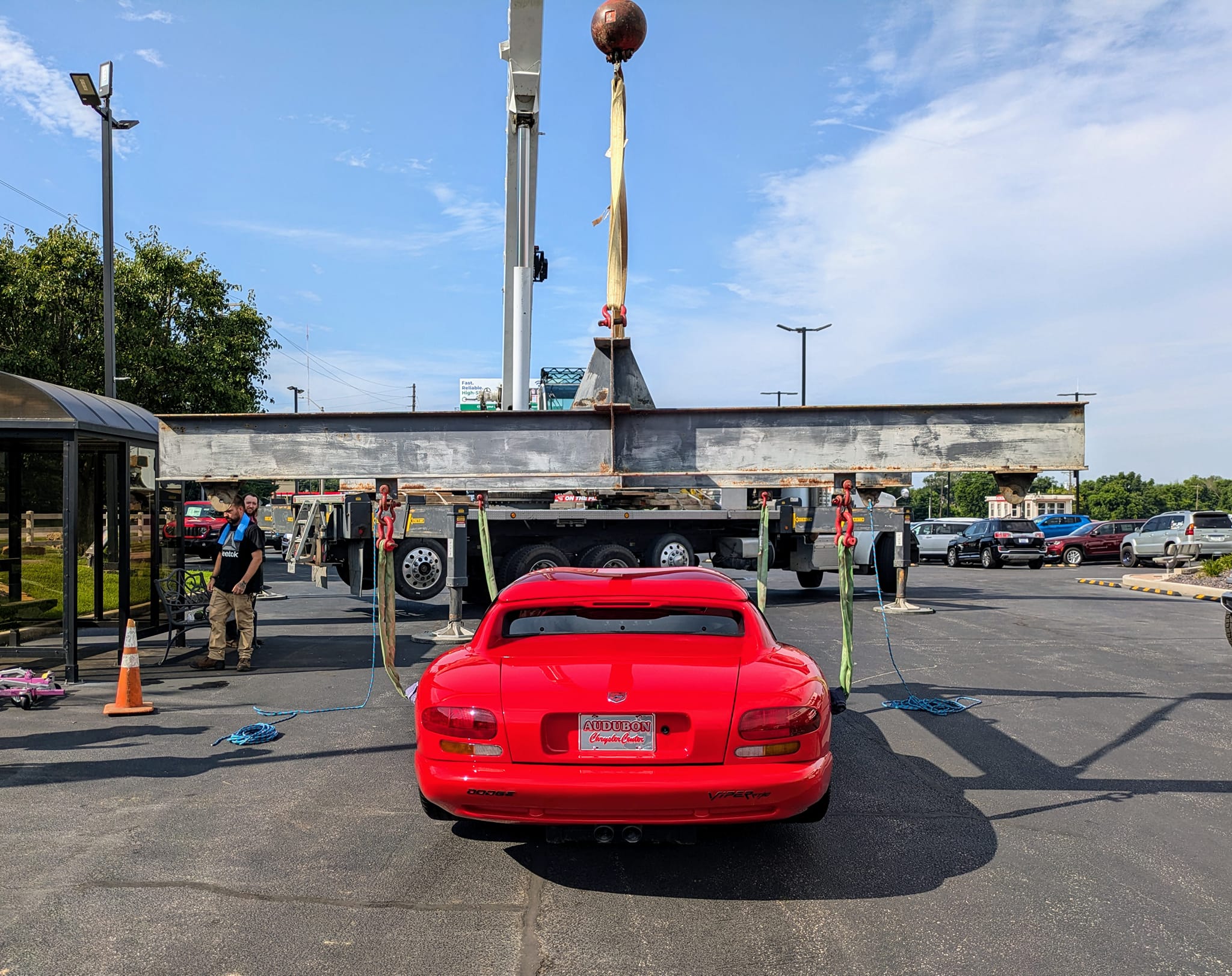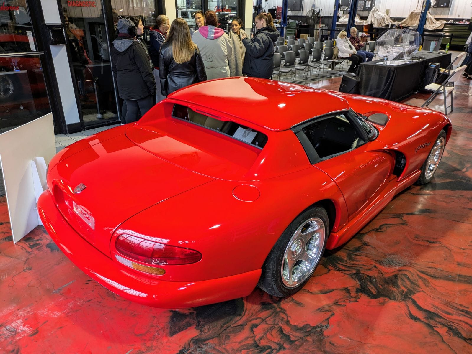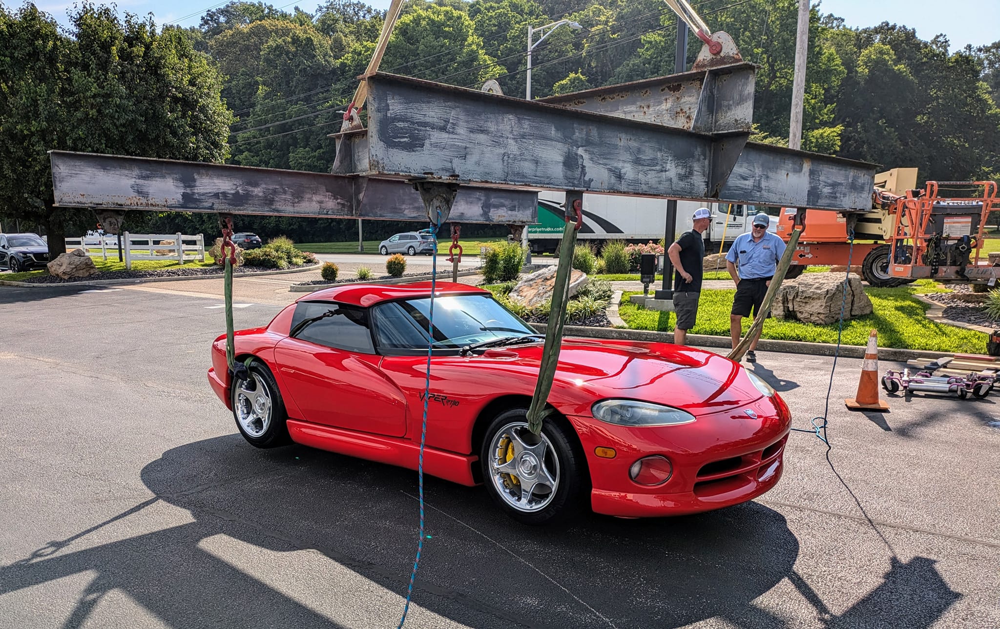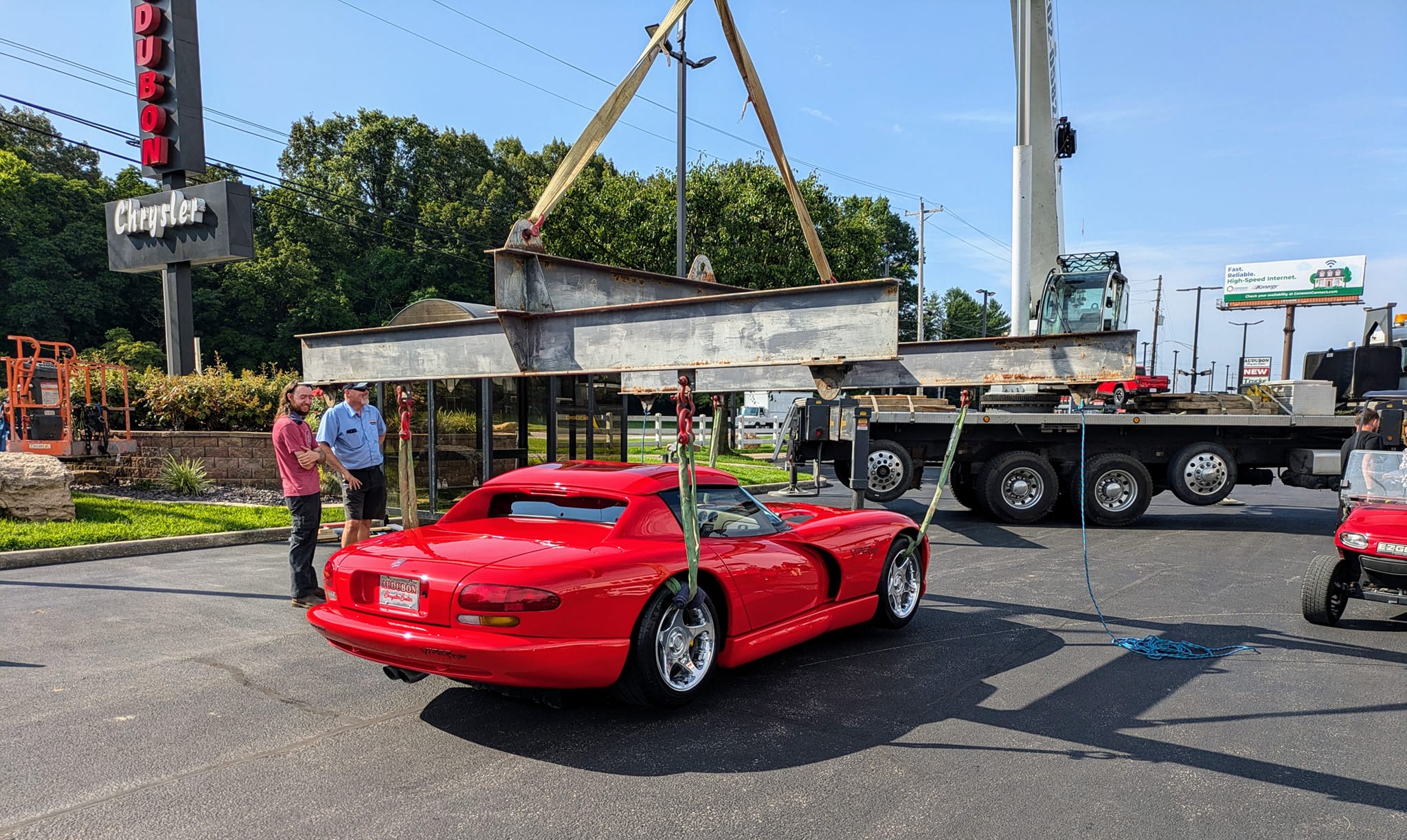 Az 1996-os, V10-es motorral szerelt Dodge Viper RT/10 vadonatúj állapotban került a tábla tetejére. A kereskedés egyik munkavállalója, Alec Girvin szerint az autó mindössze 19 kilométert futott, mielőtt 1996-ban a magasba emelték.