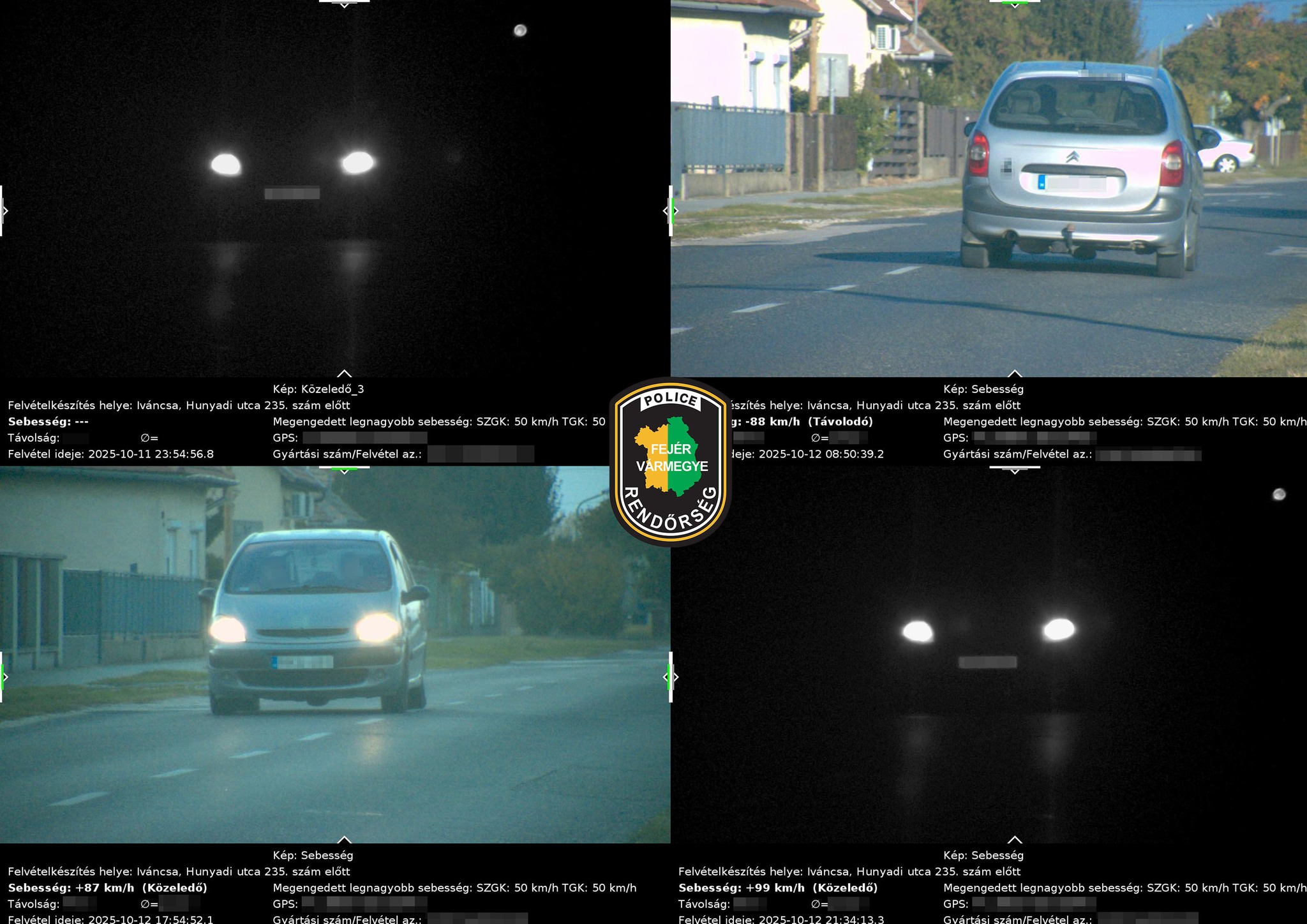 A rendőrség fotómontázsáról egy sebességérték hiányzik ugyan, de a másik három (87, 88 és 99 km/h) alapján jól látható, hogy nem is kis sebességtúllépésekről volt szó.