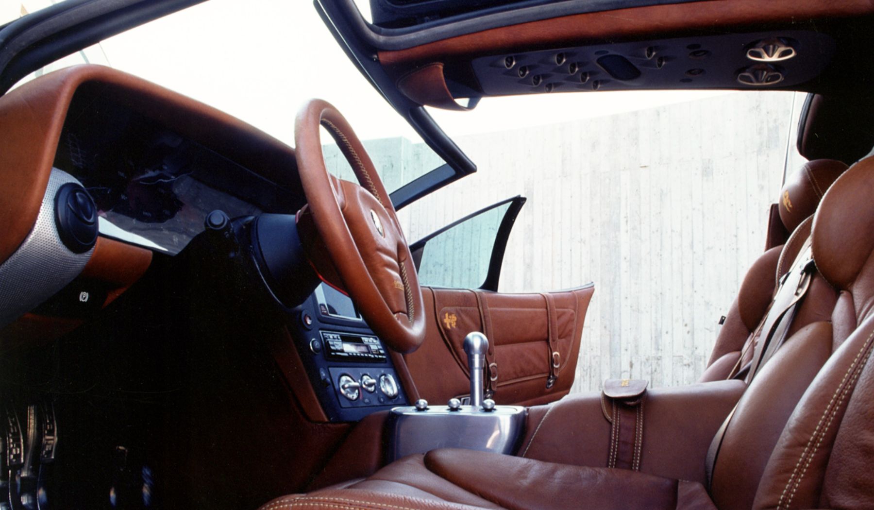 A belső tér hangulatát a sötétbarnás-bordó árnyalatú teljes bőr kárpitozás uralja. Az egyetlen hangsúlyos rész, a szekvenciális váltó rúdja, és az azt körülvevő alumínium borítás a kardánboxon, valamint az utas lábterénél ékeskedő hatalmas Sparco felirat.