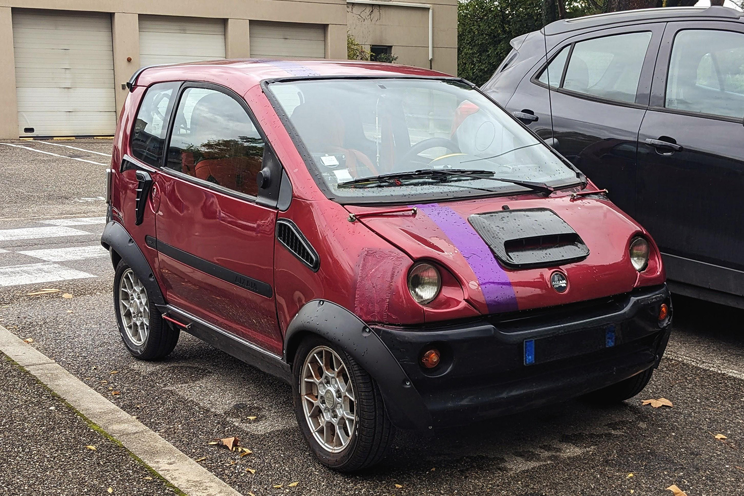 Elöl sárga lámpafólia, hátul tetőtől diffúzorig futó kék-piros-ibolya-fehér káosz, a tetőn pedig olyan díszítőelemek, amelyek láttán még egy kamionos szépségverseny zsűrije is zavartan vakarná a fejét.