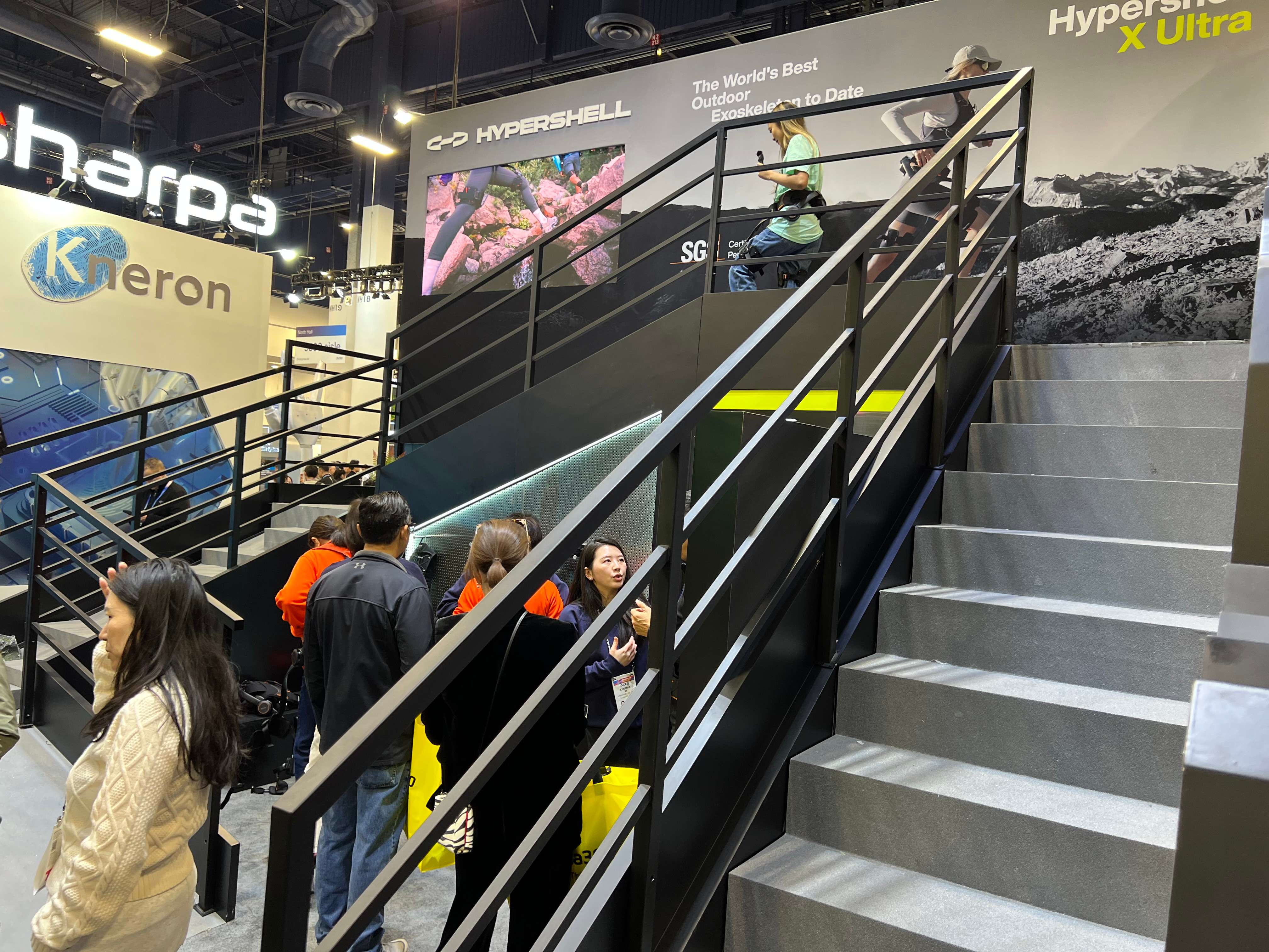 A CES egyik hatalmas kiállítócsarnokának közepén bukkantam a standra – humanoid robot egész serege közepette -, ahol fel lehetett ölteni a futurisztikus járáskönnyítőt. A cég mindig is azt kommunikálta, hogy elsősorban túrázáshoz érdemes befektetni egy ilyen exoskeletonba, ezért egy rövid, lépcsős pályát építettek standjukon, ahol az érdeklődők megtapasztalhatták, mit is tud a szerkentyű.