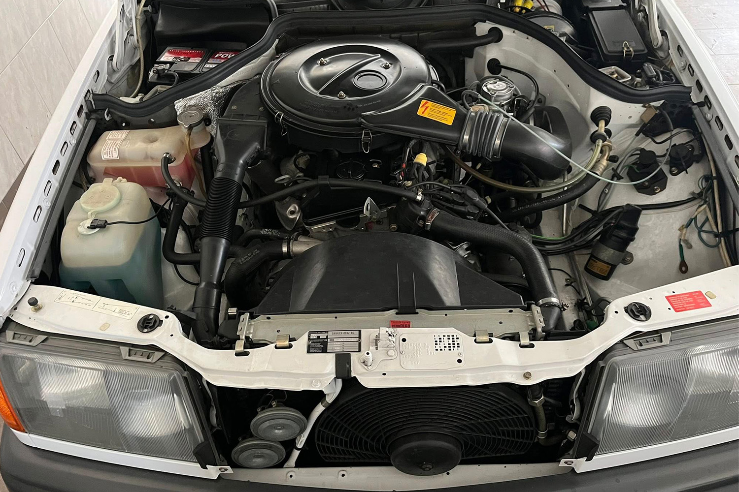 A hófehér karosszéria alatt fekete szövetbelső és egy igazi ritkaság dolgozik: egy 2000 köbcentis, 105 lóerős benzines motor Stromberg karburátorral. Ez a konfiguráció csak a korai W124-esekre volt jellemző, később gyorsan eltűnt a kínálatból.
