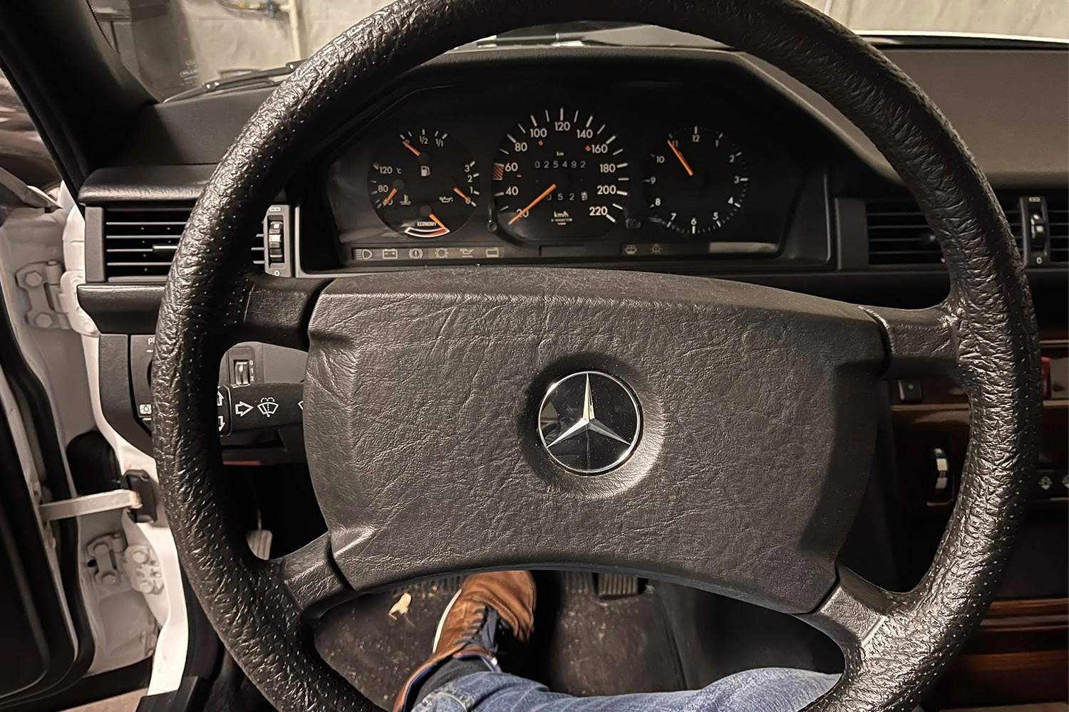 Az autó végül 2025 decemberében tűnt fel újra, egy közösségi oldal apróhirdetései között: fehér W124-es Mercedes, 25 000 kilométerrel. A képek rossz minőségűek voltak, de egy részlet árulkodó volt – az alapkivitelű autóban automata klíma.