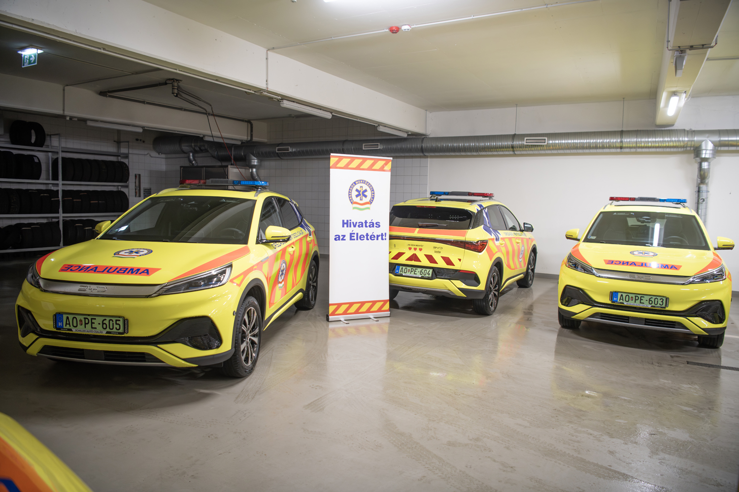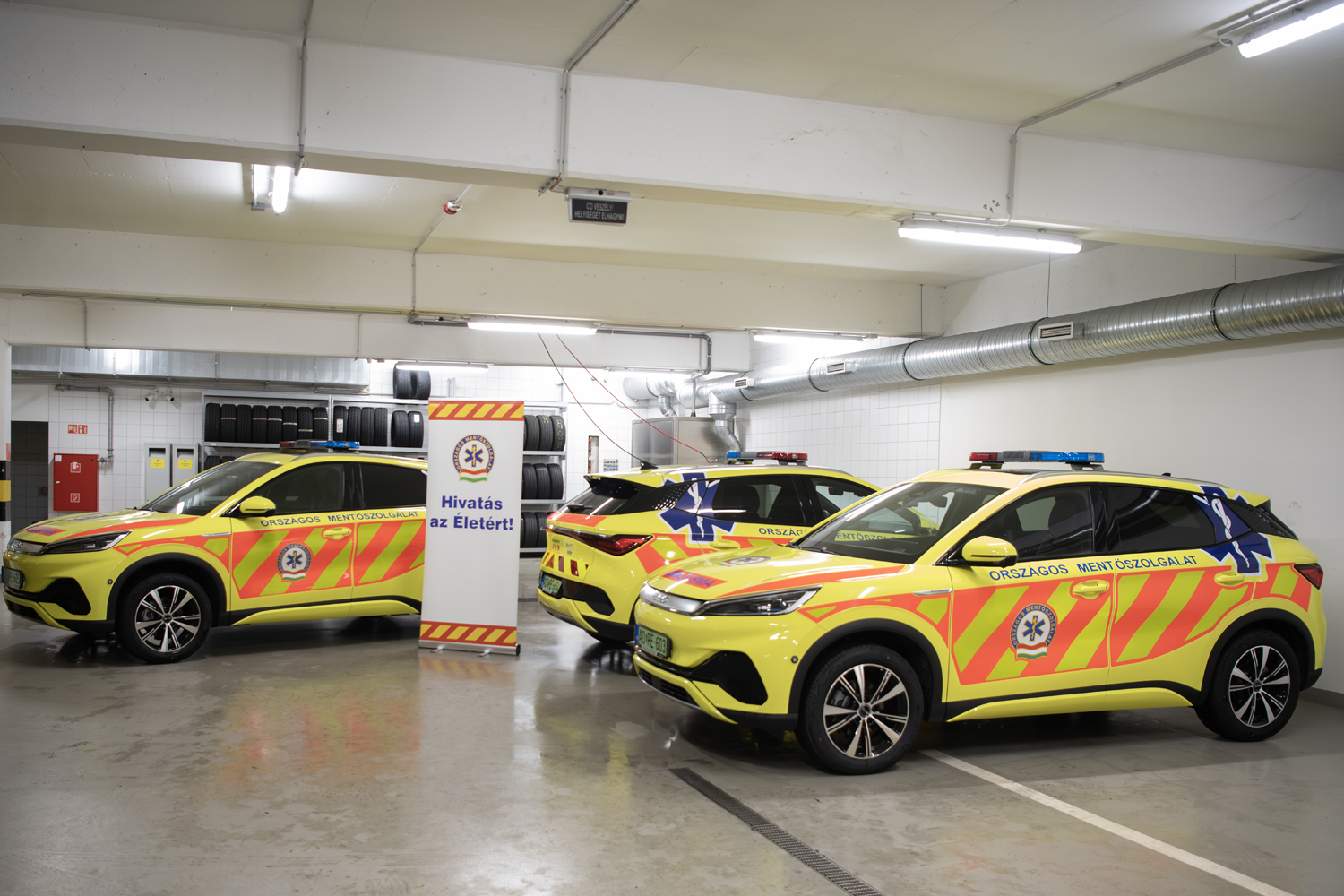 Hét darab tisztán elektromos hajtású mentőorvosi kocsi állt szolgálatba az Országos Mentőszolgálatnál.  Az Energiaügyi Minisztérium, a BYD Magyarország és a Schiller Autó Család támogatásával most átadott járművek közül öt Budapesten, kettő pedig vidéken teljesít majd szolgálatot. Közülük az egyik Miskolcon, a másik pedig Szegeden áll szolgálatba, ahol a BYD hamarosan elindítja európai gyárüzemét.